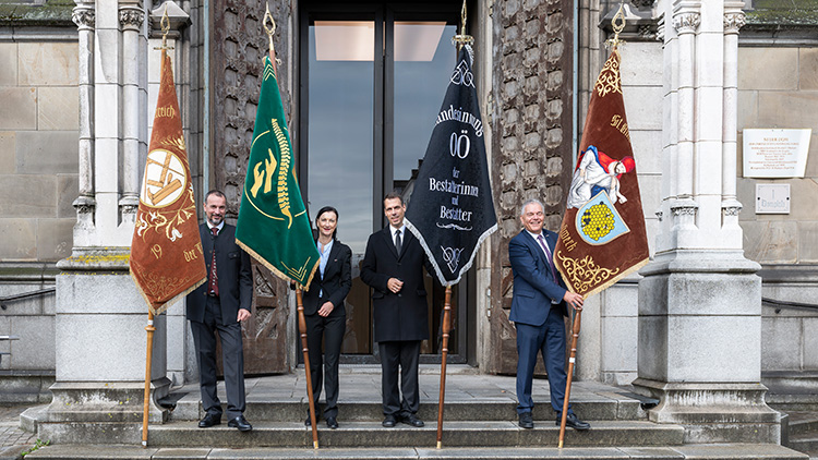 Als Ausdruck der Wertschätzung für das Wissen über Traditionen und die lange Geschichte der Bestattungskultur wurde in einem intensivem Prozess eine Innungsfahne für die oö. Bestatterinnen und Bestatter erstellt. „Die neue Fahne wird unseren Berufszweig bei Ehrungen und Messen repräsentieren und aufwerten. Sie steht für die Tradition der Bestattungsunternehmen in Oberösterreich und dient als Symbol für den Zusammenhalt in der Branche. Künftig wird sie auch bei Trauerfeiern für verstorbene Bestatterinnen und Bestatter gezeigt. Sie begrüßt neue Personen in unserem Berufszweig, ehrt sie an Meilensteinen ihres Schaffens und verabschiedet sie. Die hohe Bedeutung des Bestatterhandwerks wird hierdurch sichtbar“, erklärt Innungsmeister Martin Dobretsberger, der zugleich die umfassende und vielfältige Bestatter-Ausbildung unterstreicht, die sowohl Traditionen, althergebrachtes Wissen wie auch moderne Erkenntnisse der Trauerpsychologie und Ritualkunde beinhaltet.