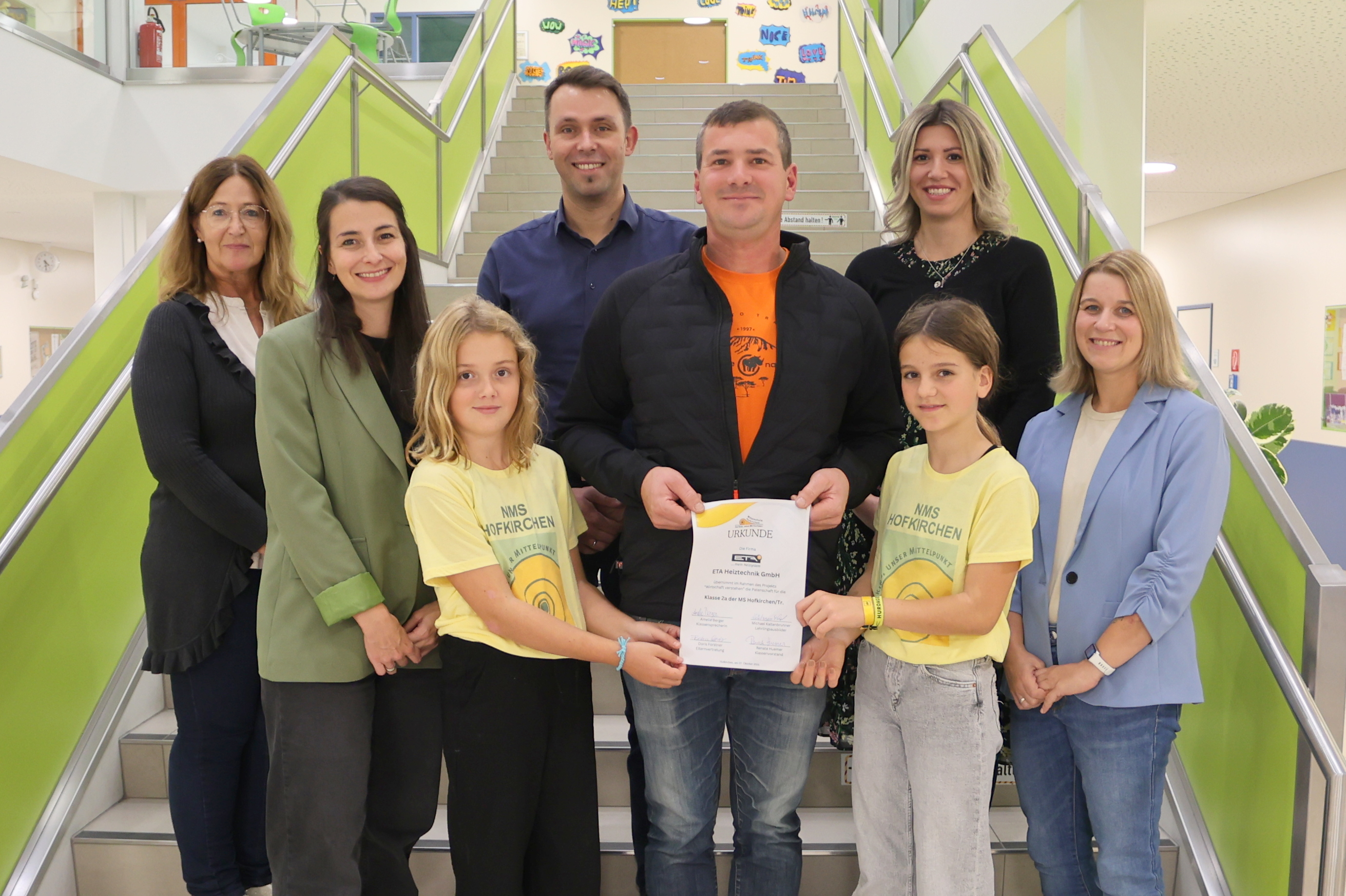 Für die 2. Klassen konnten folgende Betriebe für das Projekt gewonnen werden: Die Firma ETA Heiztechnik GmbH für die 2a Klasse, vertreten durch Herrn Michael Kaltenbrunner und die Firma BS Team Farbe GmbH in Hofkirchen für die 2b Klasse, vertreten durch Frau Maria Bell.