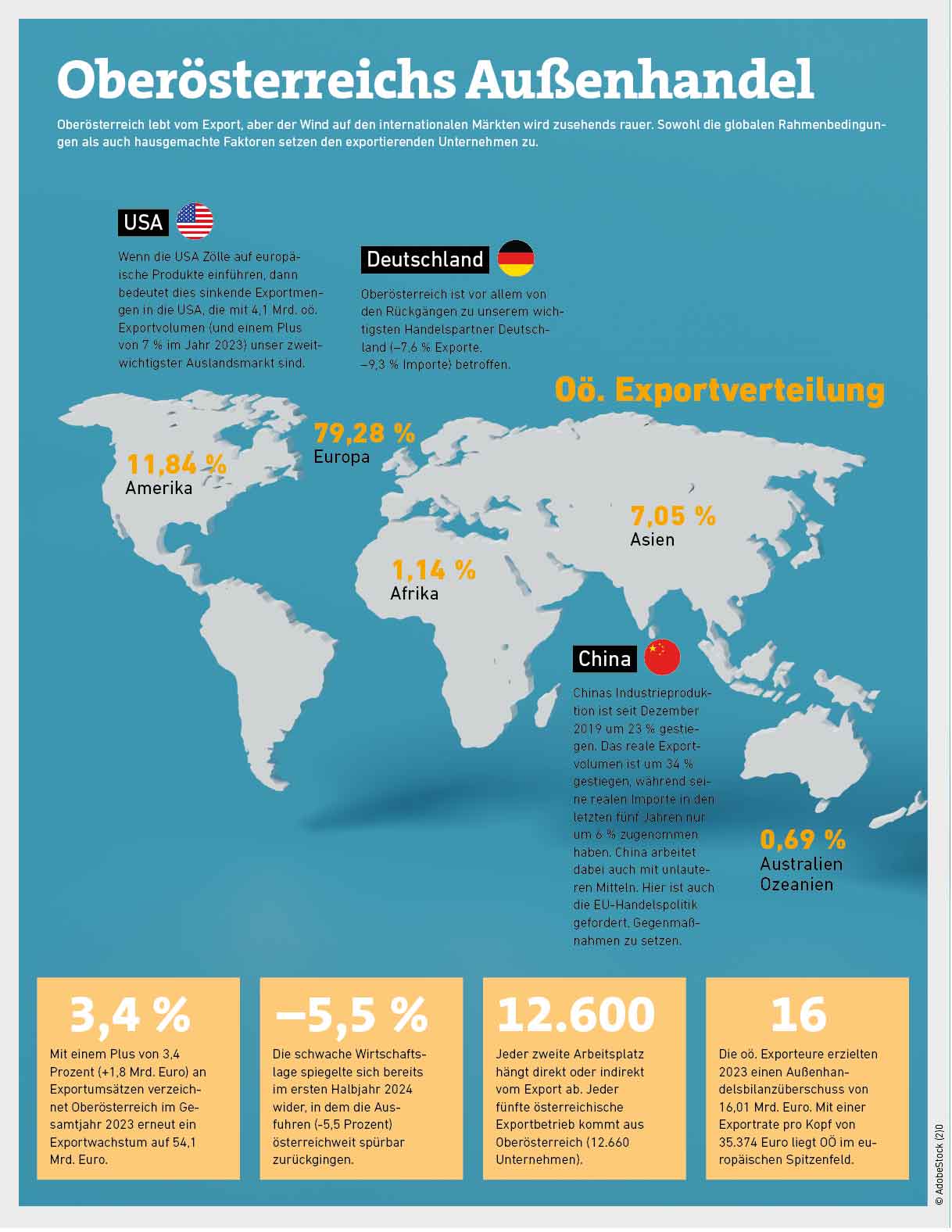 Als wären die wenig erfreulichen Prognosen der Wirtschaftsforscher für die heimische Konjunktur nicht genug, kommen jetzt auch noch schlechte Nachrichten vom Außenhandel. 2023 konnte Oberösterreich noch einen Exportrekord verbuchen, im heurigen ersten Halbjahr steht ein Minus von 5,5 Prozent zu Buche.