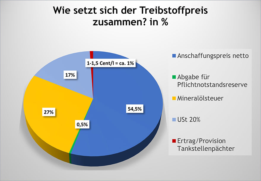 Die Höhe der Provision/des Ertrages der Tankstellenpächter ist in der Regel 1,0 - 1,5 Cent pro Liter und bleibt immer gleich – unabhängig vom Abgabepreis an der Zapfsäule!