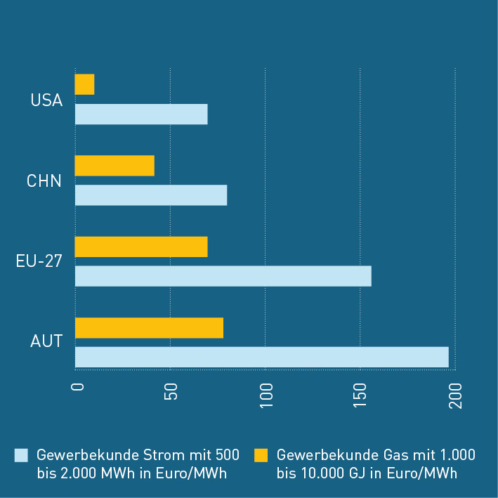 „Die reinen Energiepreise für Strom und Gas sind in Österreich im Vergleich mit dem Durchschnitt der EU-27 deutlich höher. Besorgniserregend ist der Vergleich mit China und den USA. Vor allem die energieintensive Industrie in OÖ trifft das besonders hart. Mit diesem Kostennachteil verliert OÖ zusehends an Wettbewerbsfähigkeit!“