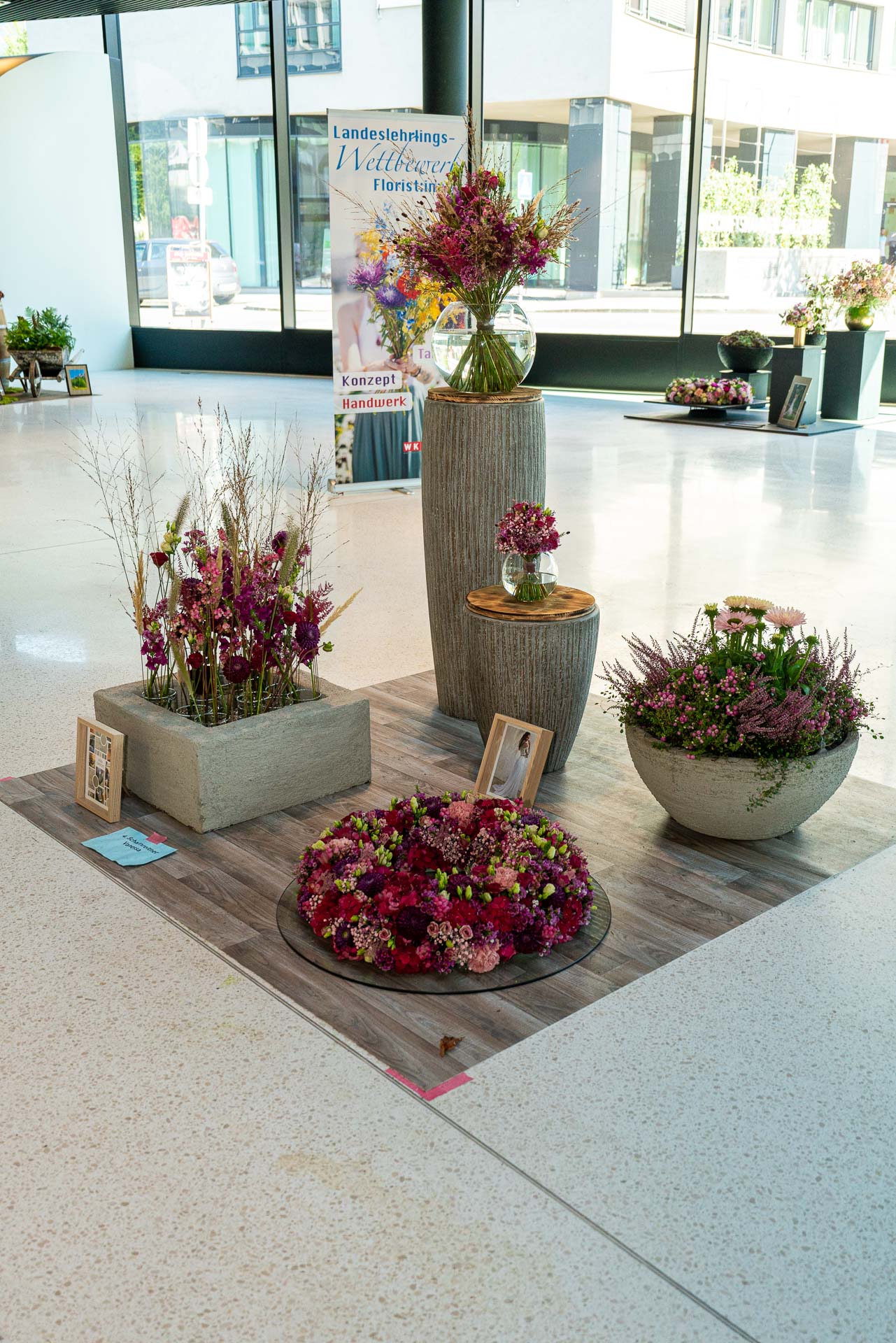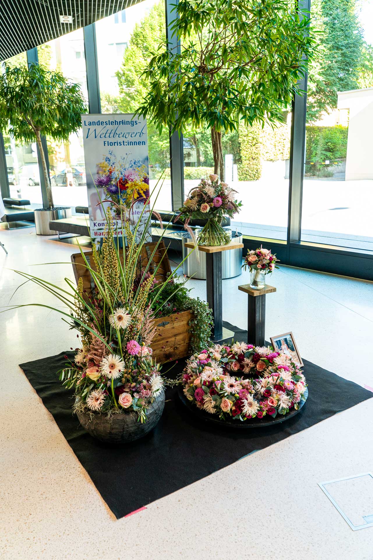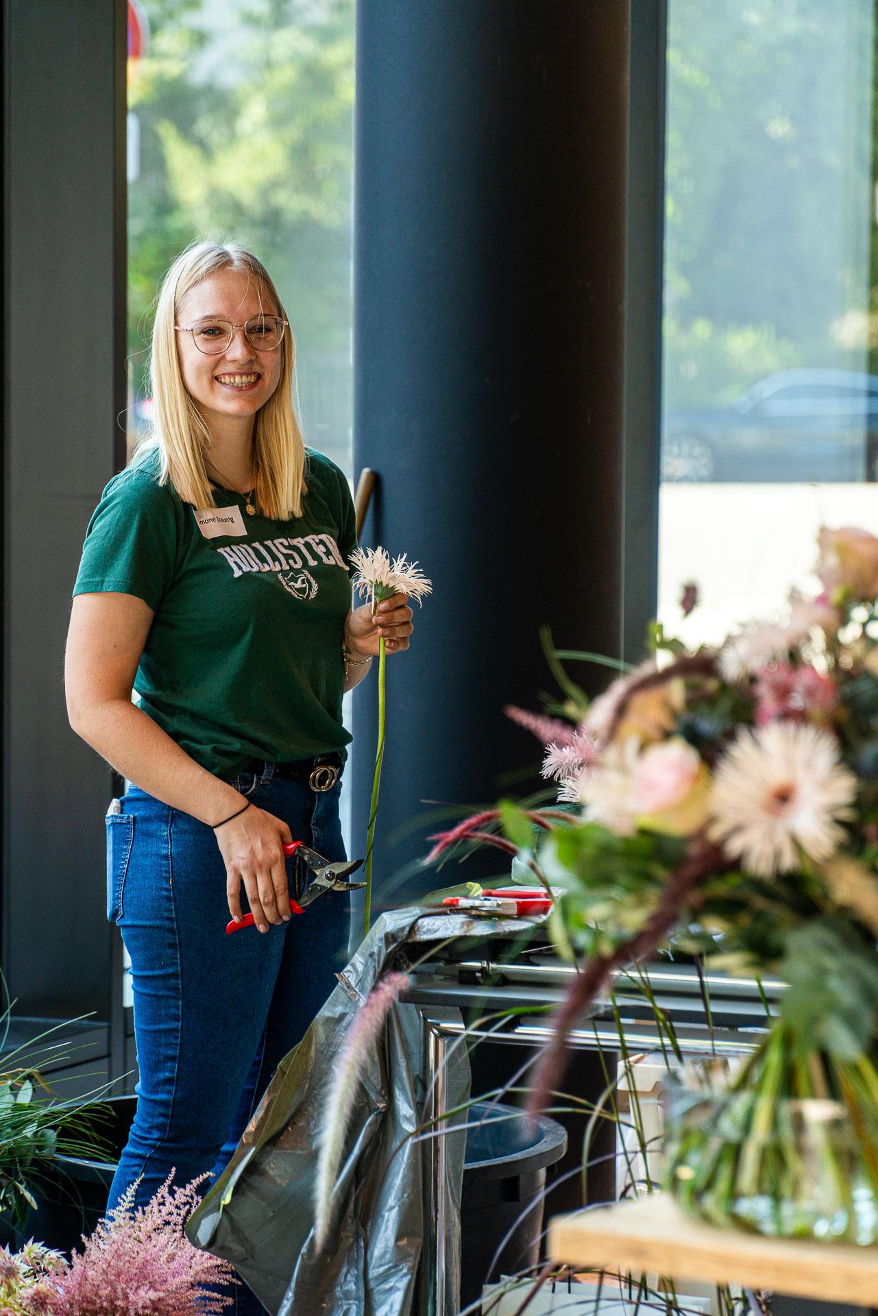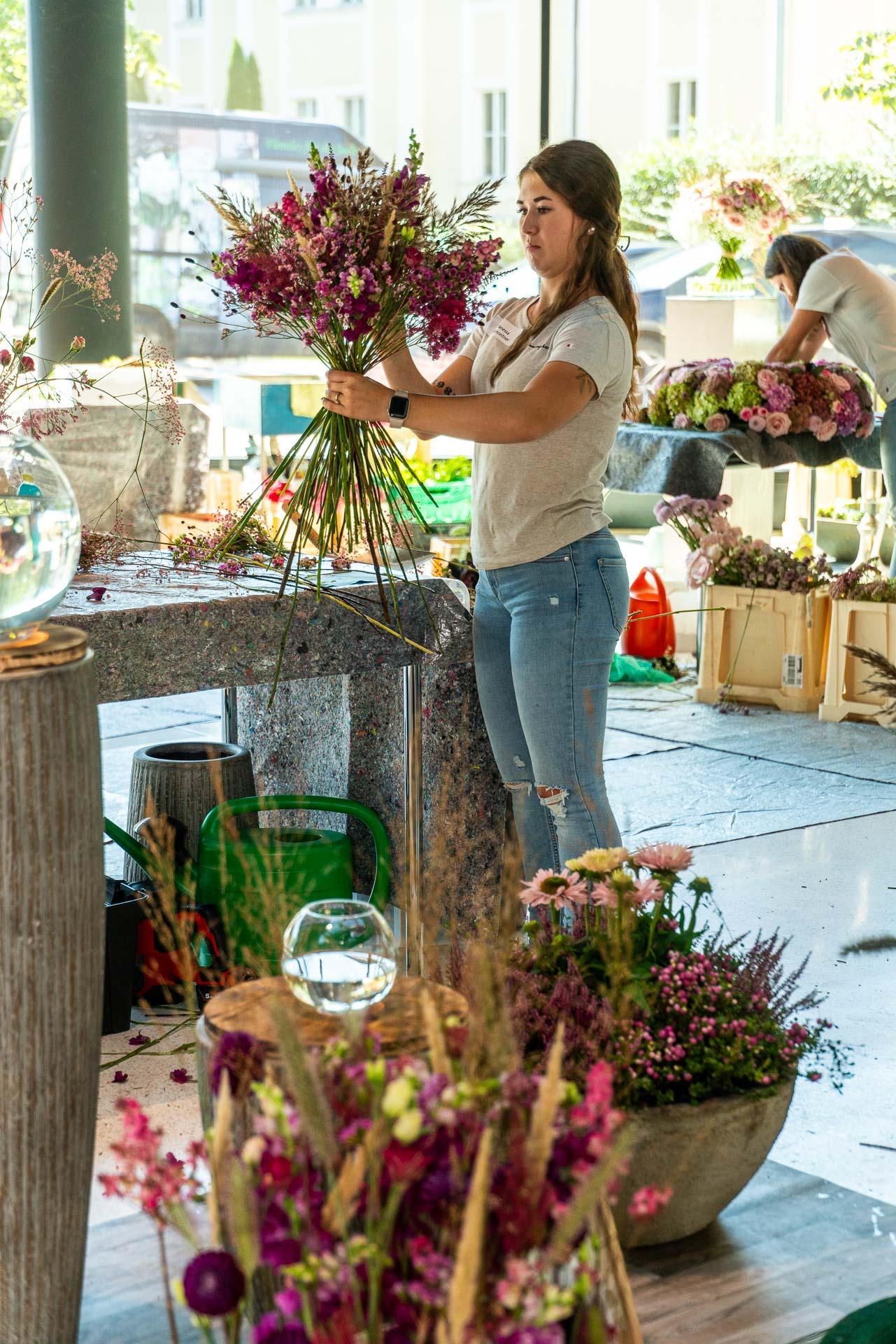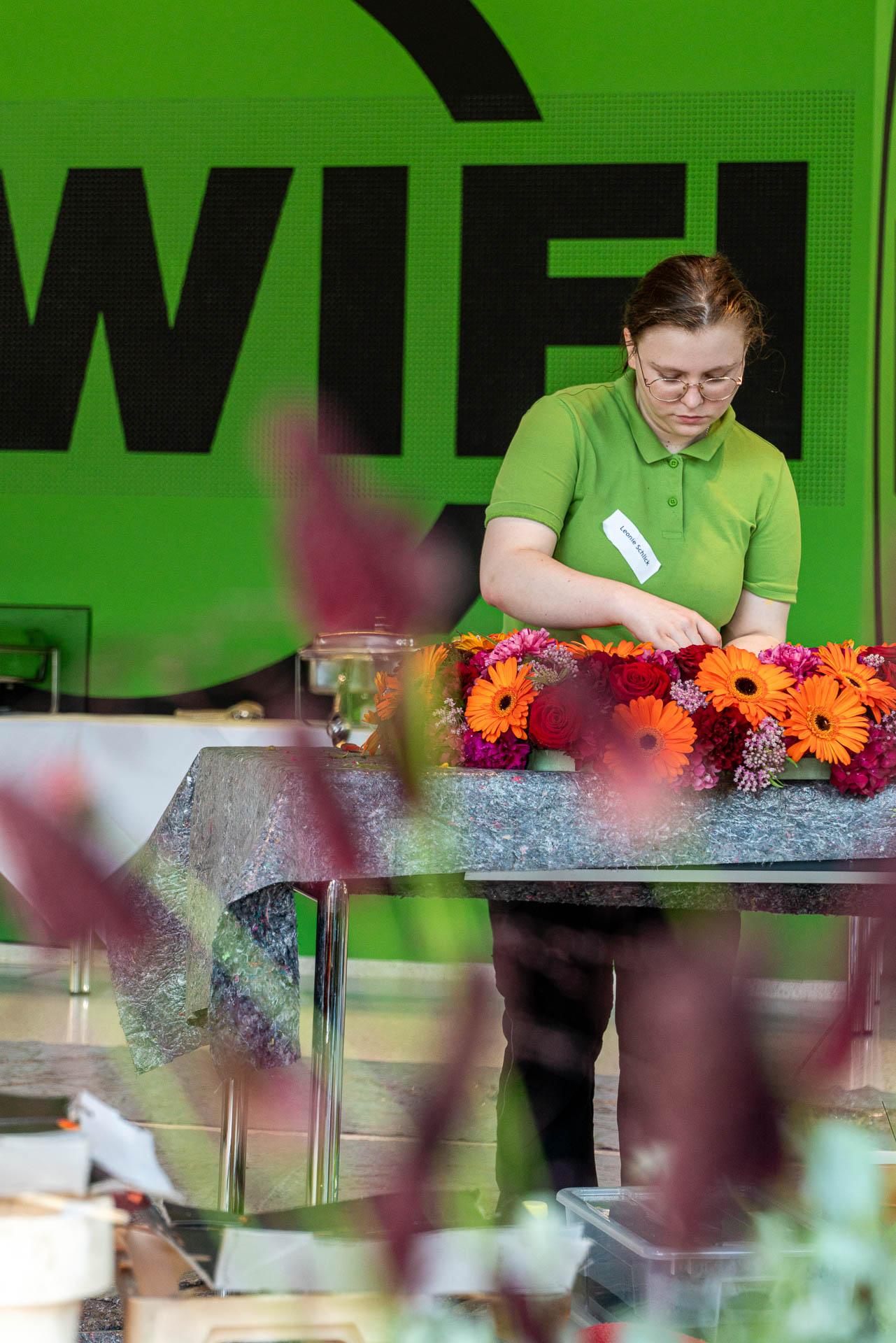 Dies bedarf viel Vorbereitung und detaillierter Auswahl der Blüten und Materialien. Eine solche Prüfung verlangt den jungen Talenten auch organisatorisch einiges ab und bereitet sie somit bestens auf die neuen Herausforderungen als Gesell:in vor.