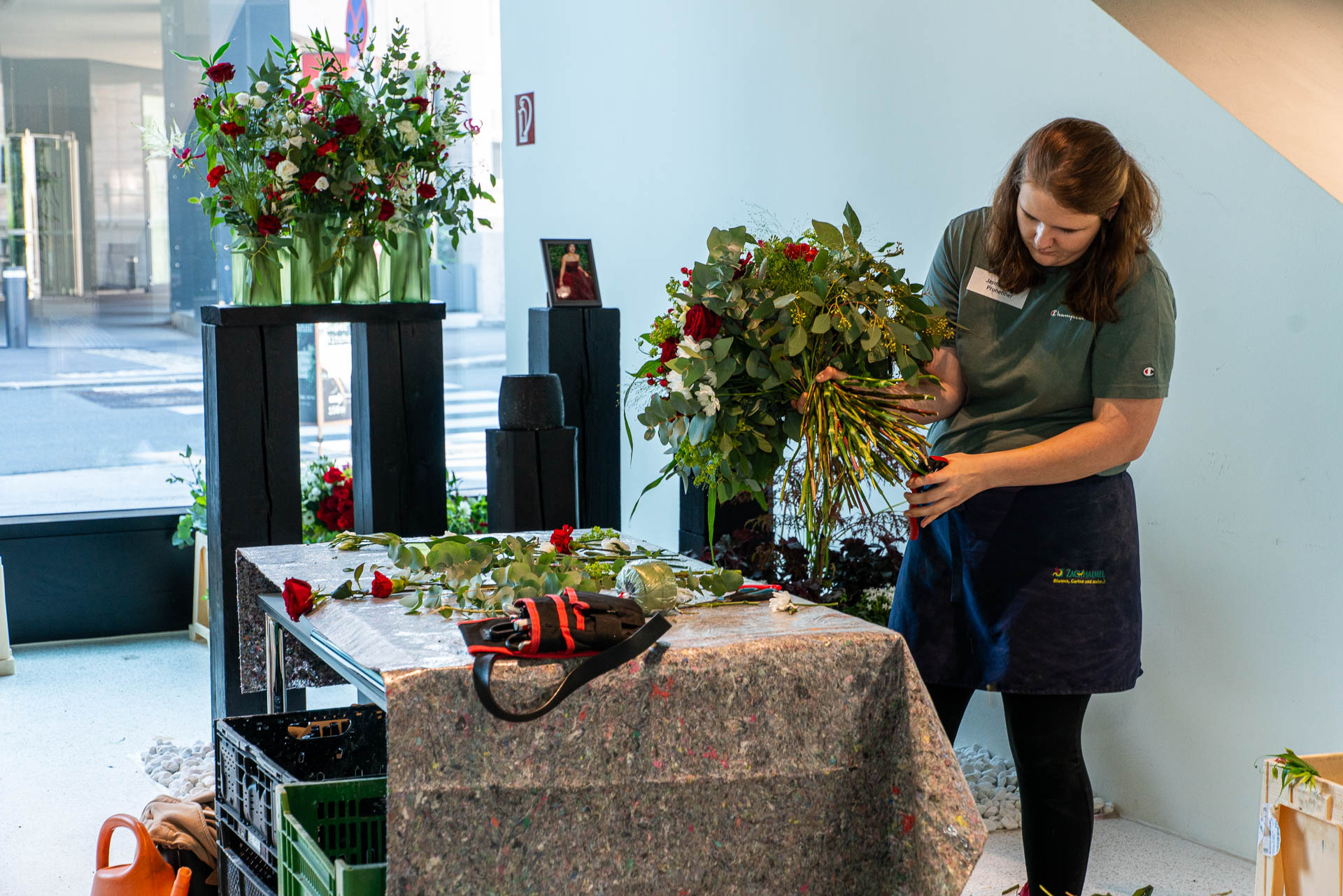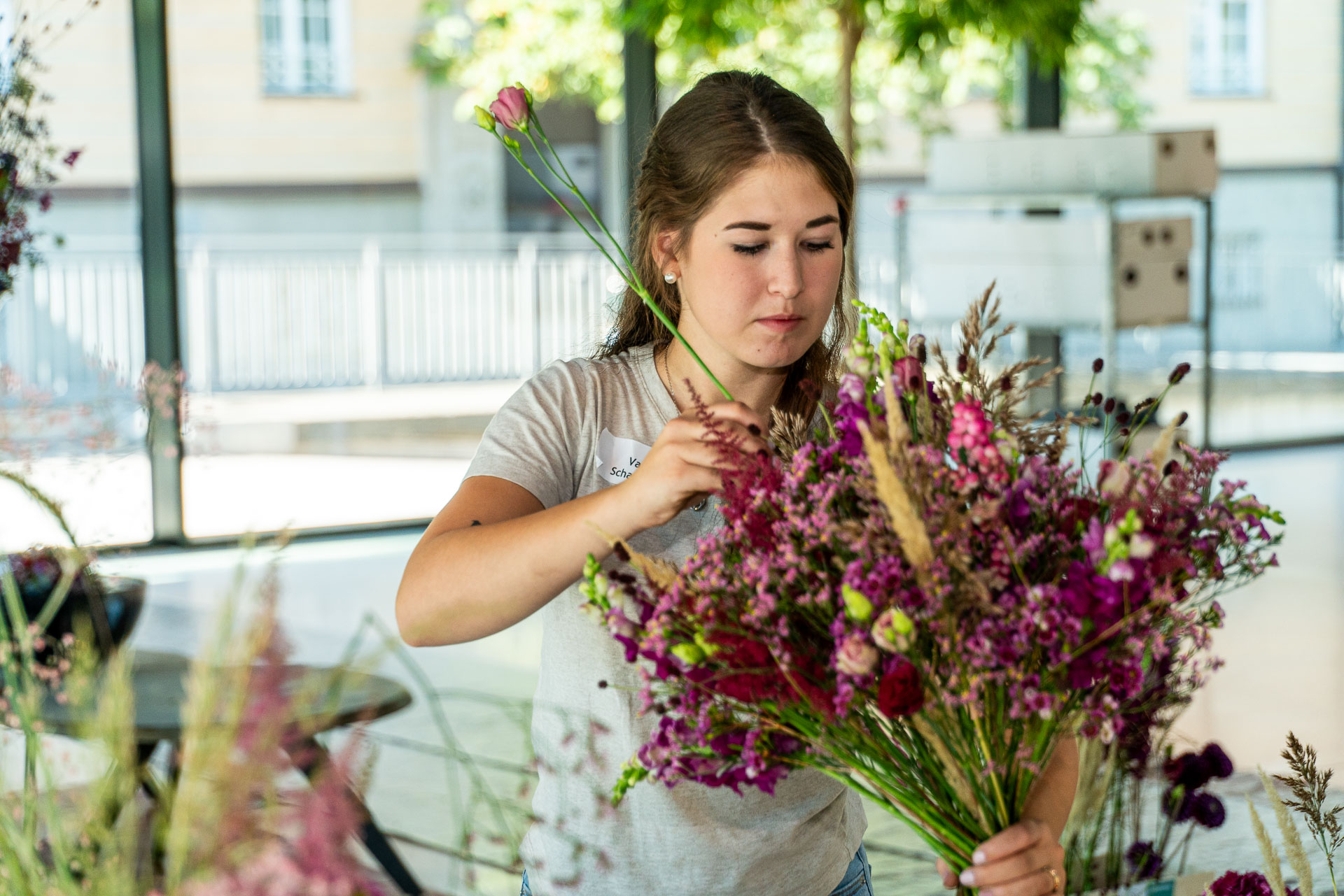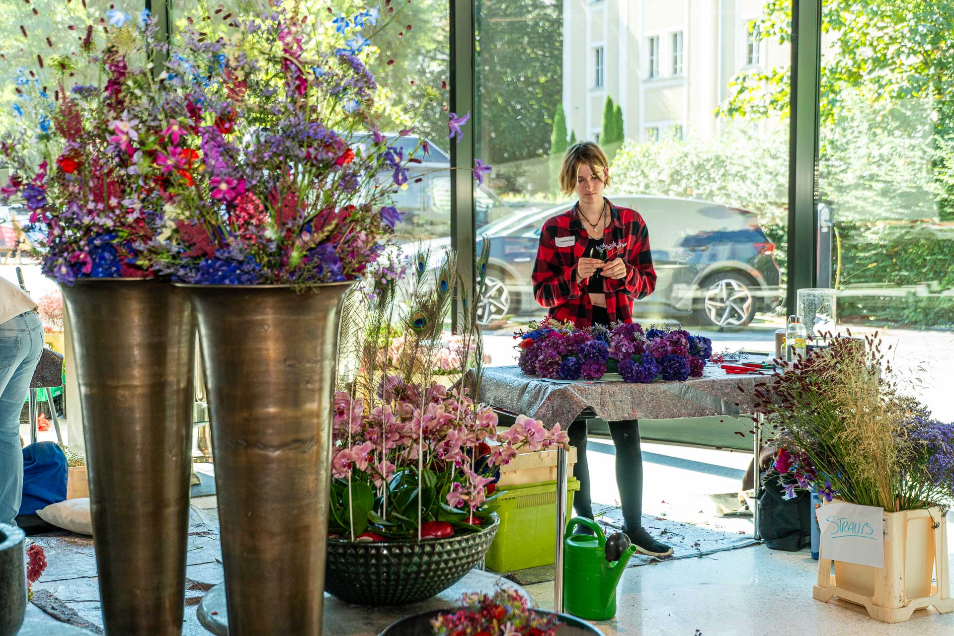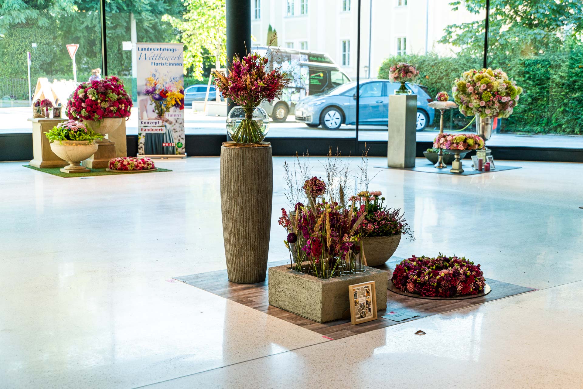 Dies bedarf viel Vorbereitung und detaillierter Auswahl der Blüten und Materialien. Eine solche Prüfung verlangt den jungen Talenten auch organisatorisch einiges ab und bereitet sie somit bestens auf die neuen Herausforderungen als Gesell:in vor.
