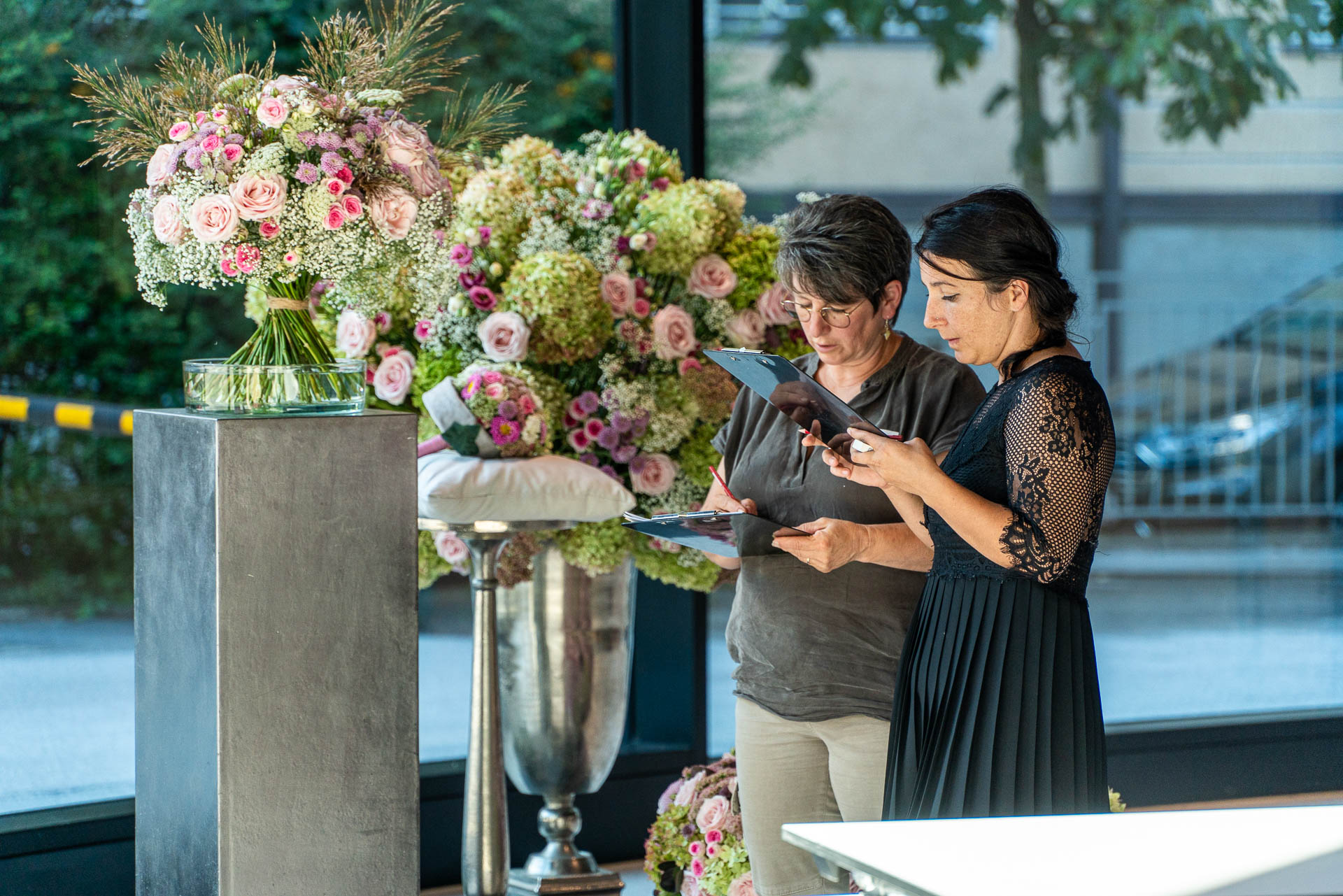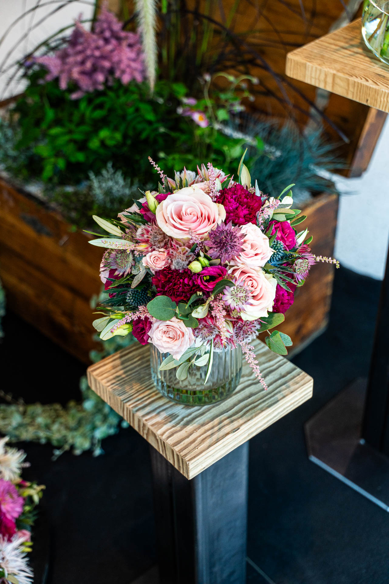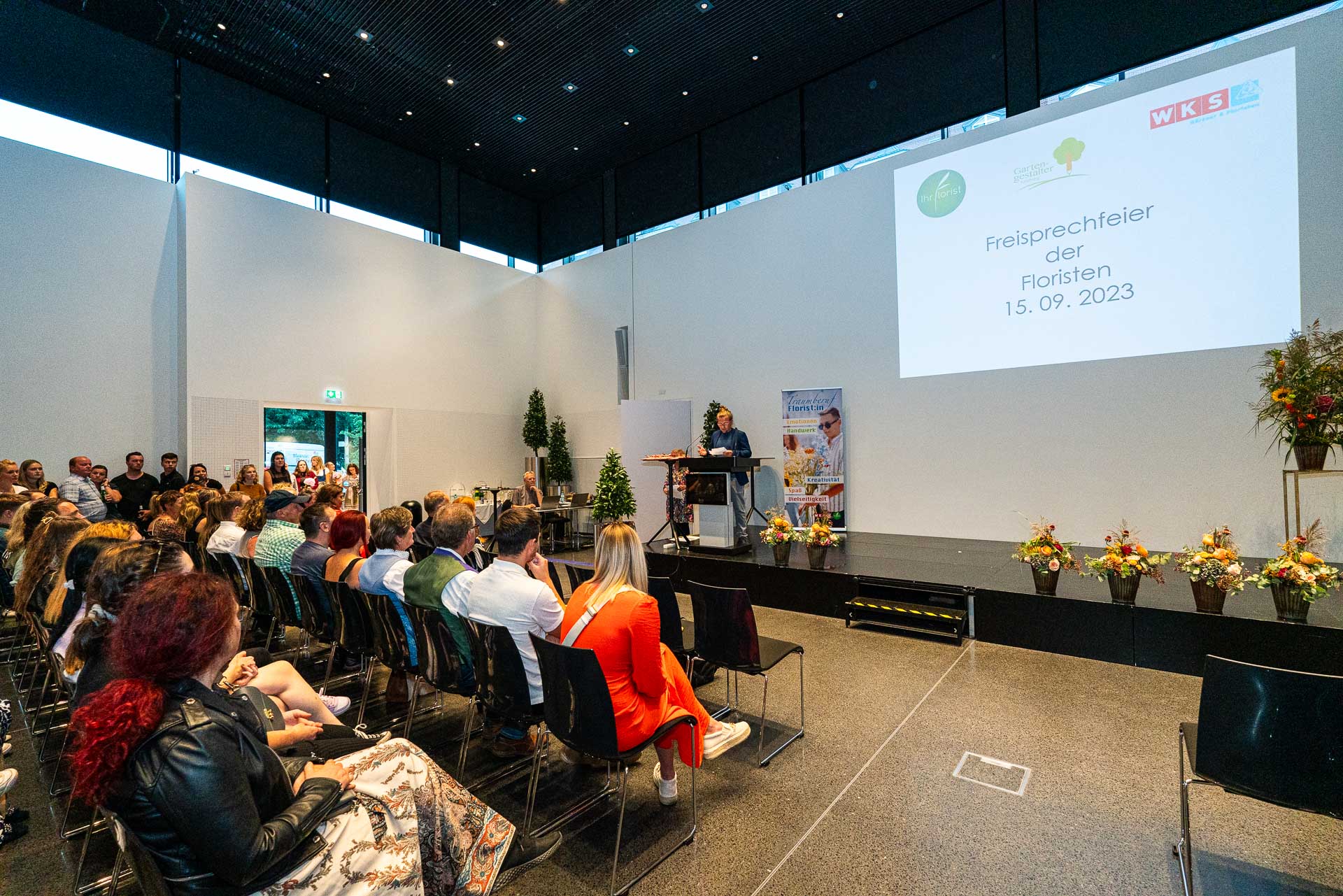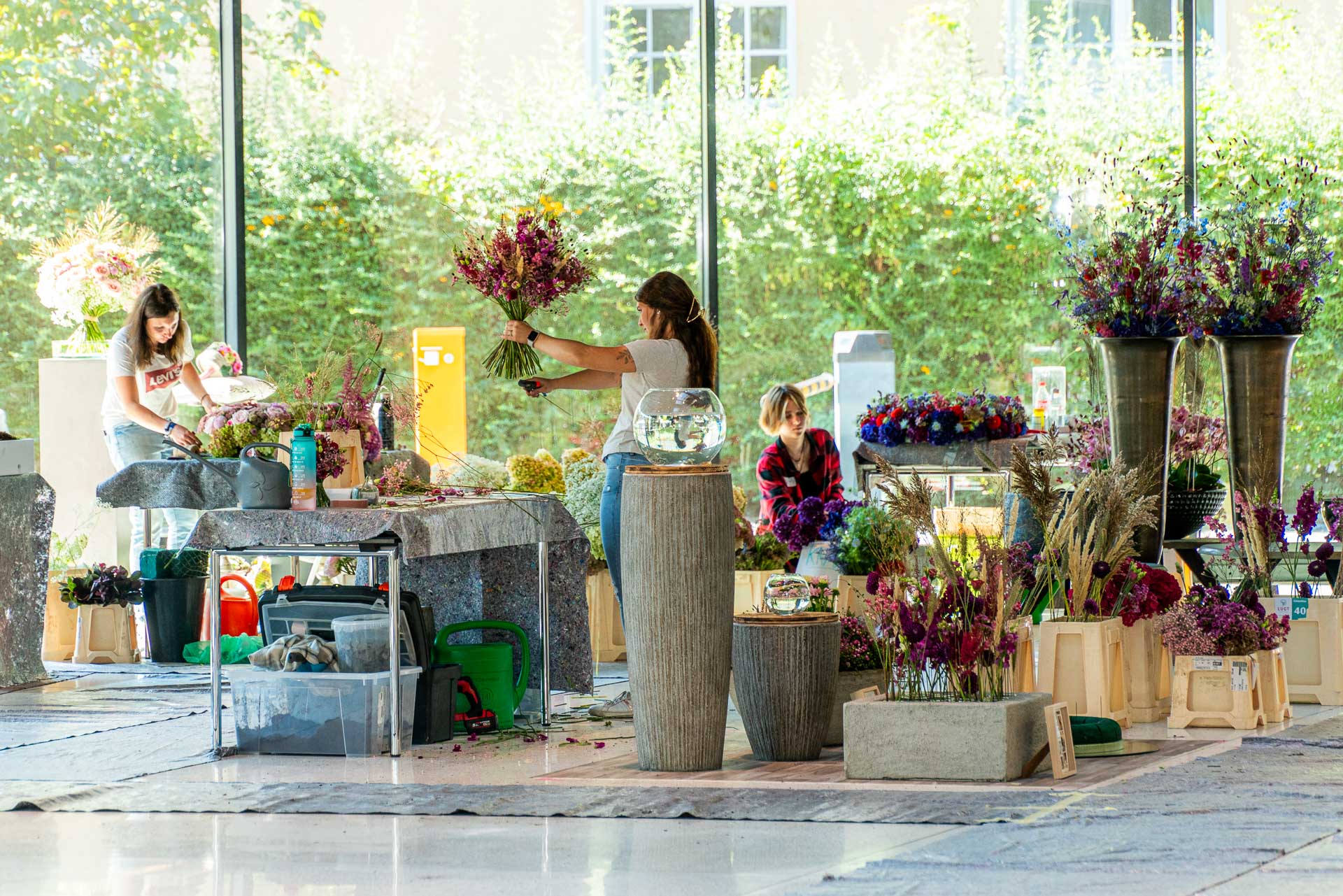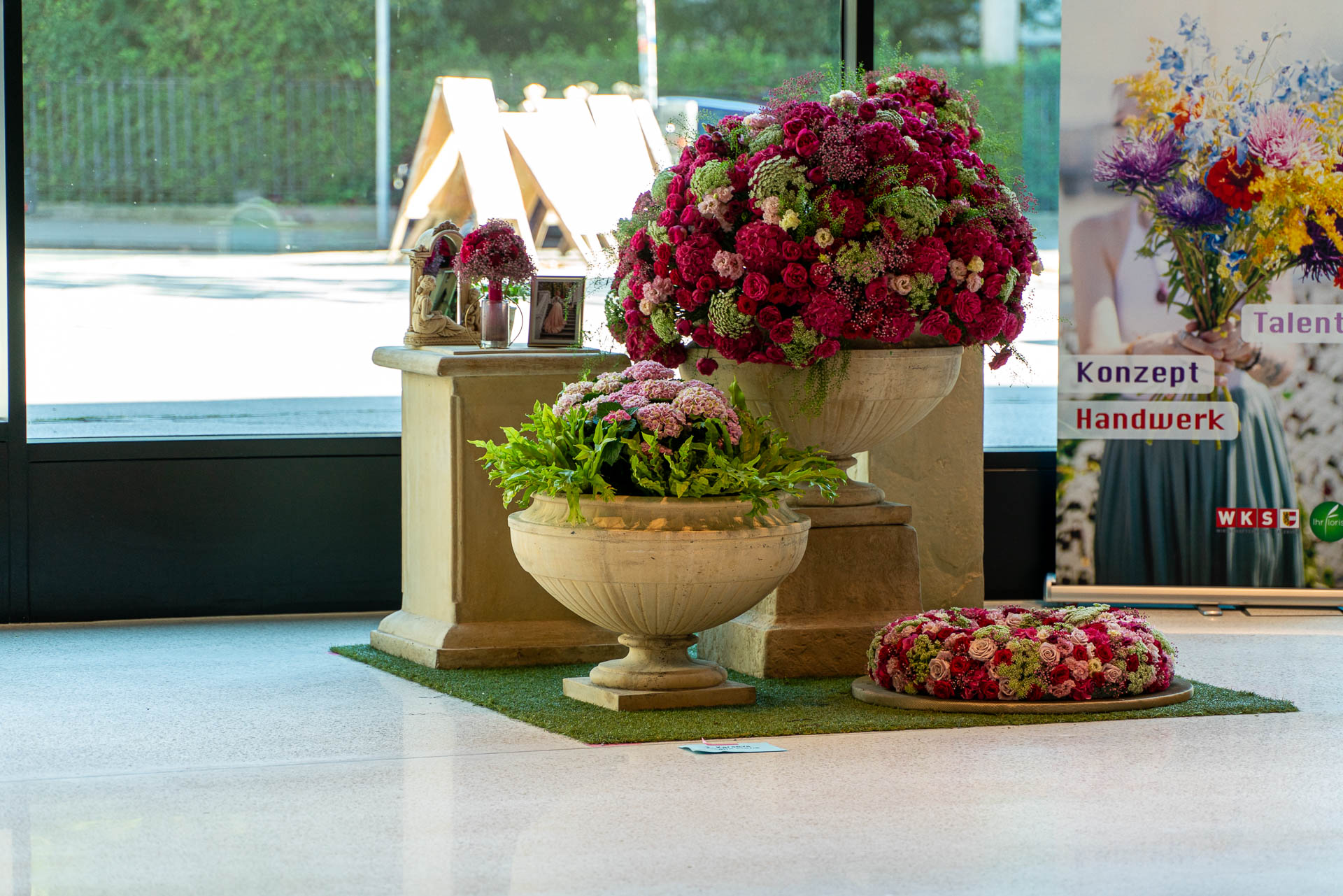 Dies bedarf viel Vorbereitung und detaillierter Auswahl der Blüten und Materialien. Eine solche Prüfung verlangt den jungen Talenten auch organisatorisch einiges ab und bereitet sie somit bestens auf die neuen Herausforderungen als Gesell:in vor.