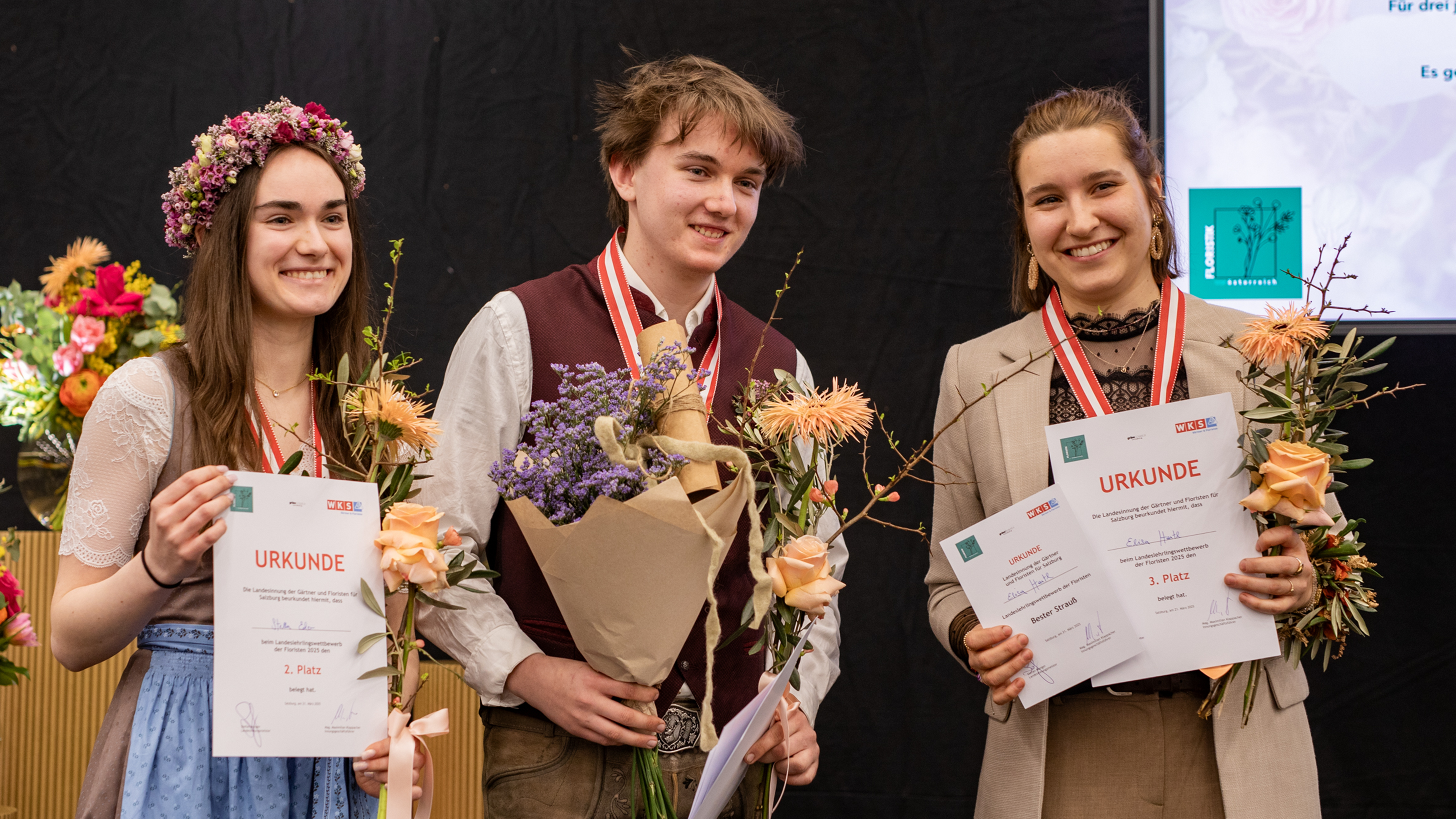 Mit Kreativität, handwerklichem Geschick und Leidenschaft überzeugten Salzburgs junge Florist:innen beim Lehrlingswettbewerb 2025 am 21. März 2025 im Messezentrum Salzburg. Die drei besten Talente wurden feierlich ausgezeichnet und vertreten Salzburg beim Bundeslehrlingswettbewerb.
