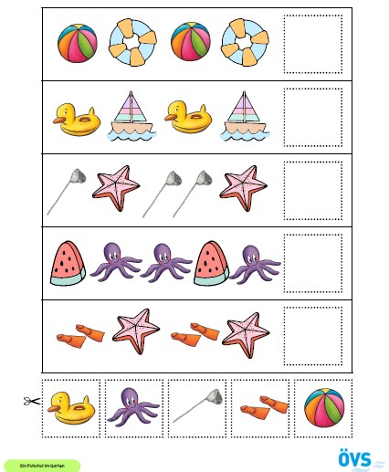 Sommermuster- Kannst du jedes Muster fortsetzen? Schneide aus und klebe an.