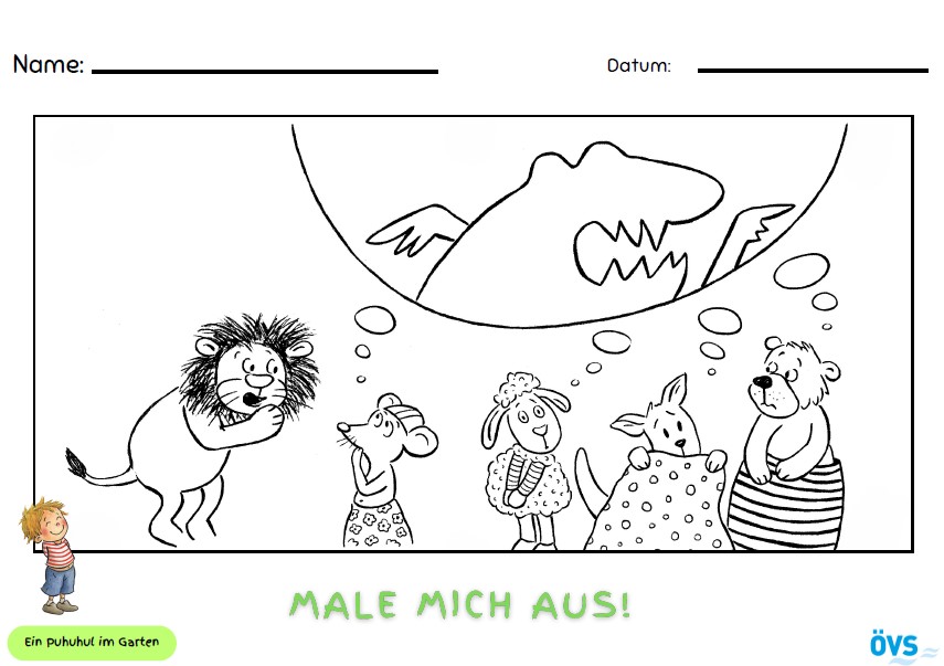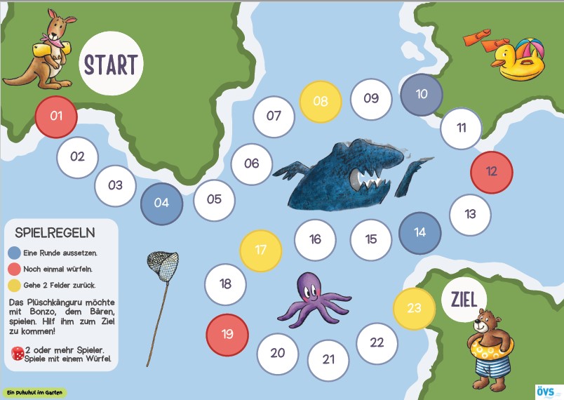 Der ÖVS hat Ausmal-, Lern-, Spiel- und Rätselunterlagen in englischer und deutscher Sprache zum Kinderbuch "Ein Puhuhul im Garten" erarbeitet.