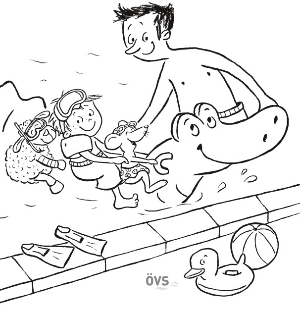 Schneide die Gegenstände aus, die du zum Pool mitnimmst! Klebe sie rund um den Pool.