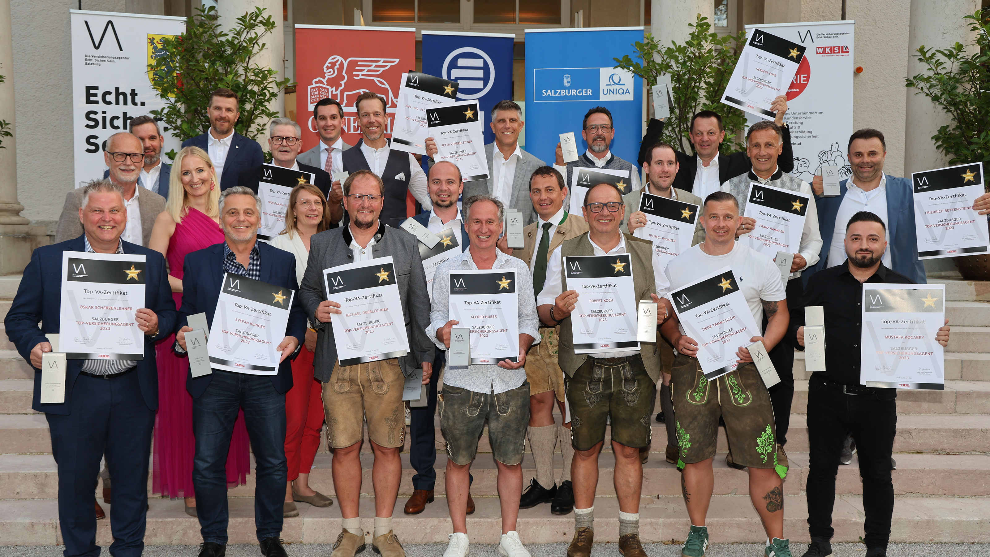 20 Mitglieder der Salzburger Versicherungsagenten hatten sich 2023 dazu entschlossen, ihre Fähigkeiten und Kenntnisse zu vertiefen und verbriefen zu lassen. Der Einsatz – die Nutzung der Ausbildungsangebote weit über dem gesetzlich verpflichtenden Rahmen – macht sich nun bezahlt. Die Moderatorin Angelika Pehab betonte die hohe Kompetenz der Geehrten in punkto Rechtsvorschriften, Marktentwicklung und bei der Schaffung perfekter Rahmenbedingungen für ihre Kunden. Die Verleihung der Top-VA-Zertifikate vor vielen Mitgliedern und Ehrengästen war die krönende Würdigung diese Engagements. Sechs neue Absolventen haben sich zudem erfolgreich einem Fachgespräch mit den Obmänner-Stellvertretern Alfred Huber und Karl Schnell gestellt.