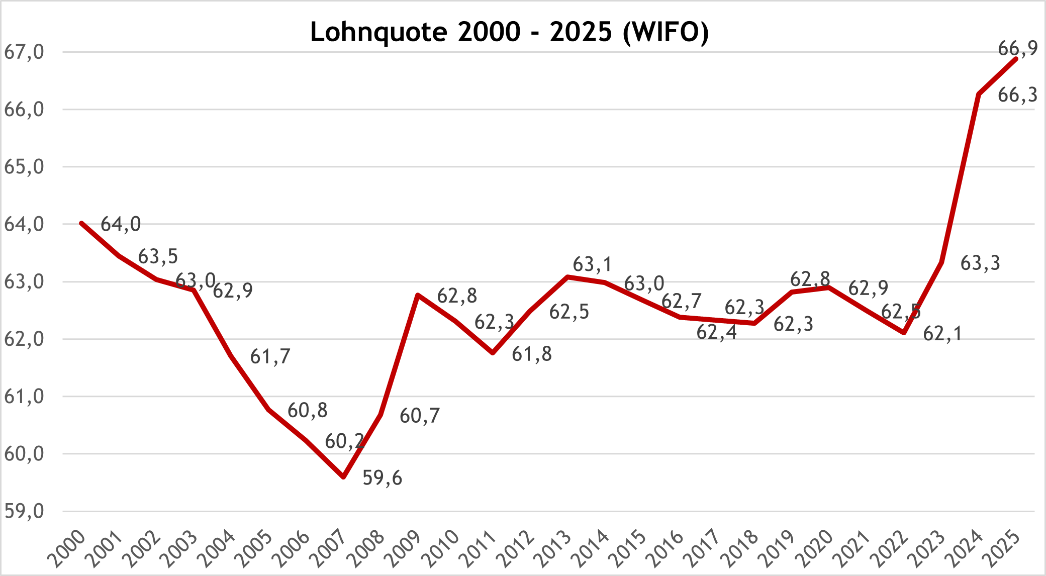 Die Widersprüche in der heimischen Wirtschaft verschärfen sich: In der EU sind nur in Österreich Löhne und Pensionen durch flächige Abschlüsse gegen Inflation gesichert. Die Kaufkraft ist daher 2023 und 2024 kräftig gestiegen. Die Folge: Die Lohnquote, der Anteil der Arbeitnehmer am Wohlstandskuchen, ist laut WIFO am höchsten Stand seit 30 Jahren.