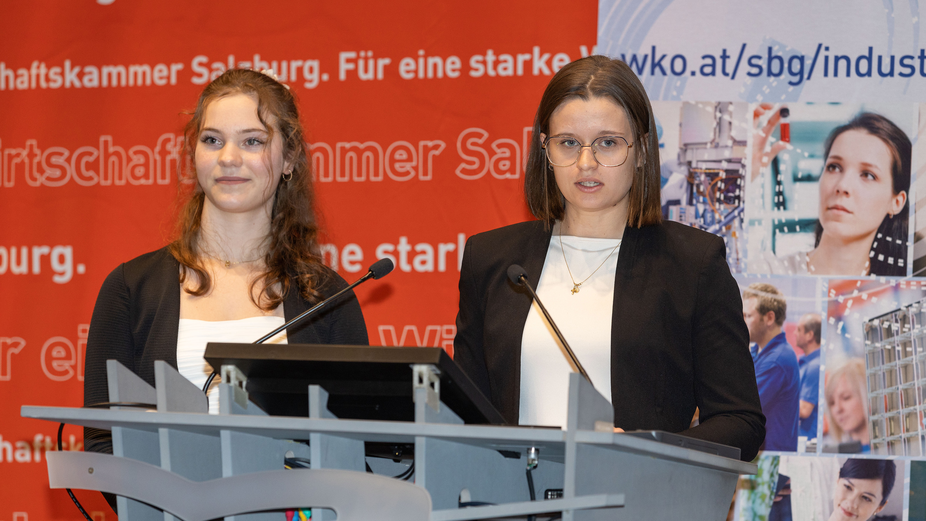 Für die junge Salzburger Tech-Elite gab es immerhin 93.250 € an Stipendien – ein kräftiges Signal, dass sich Leistung lohnt! Karina Ammerer und Christina Weißenbacher (beide haben einen Notendurchschnitt von 1,0!) von der HTL Hallein bedankten sich im Namen der Schüler:innen für die Stipendien. „Wir freuen uns über die Wertschätzung, die uns die Industrie entgegenbringt. Sie ist Ansporn und Motivation für uns. Eine Karriere in der Industrie stellt eine attraktive Option für uns dar.“