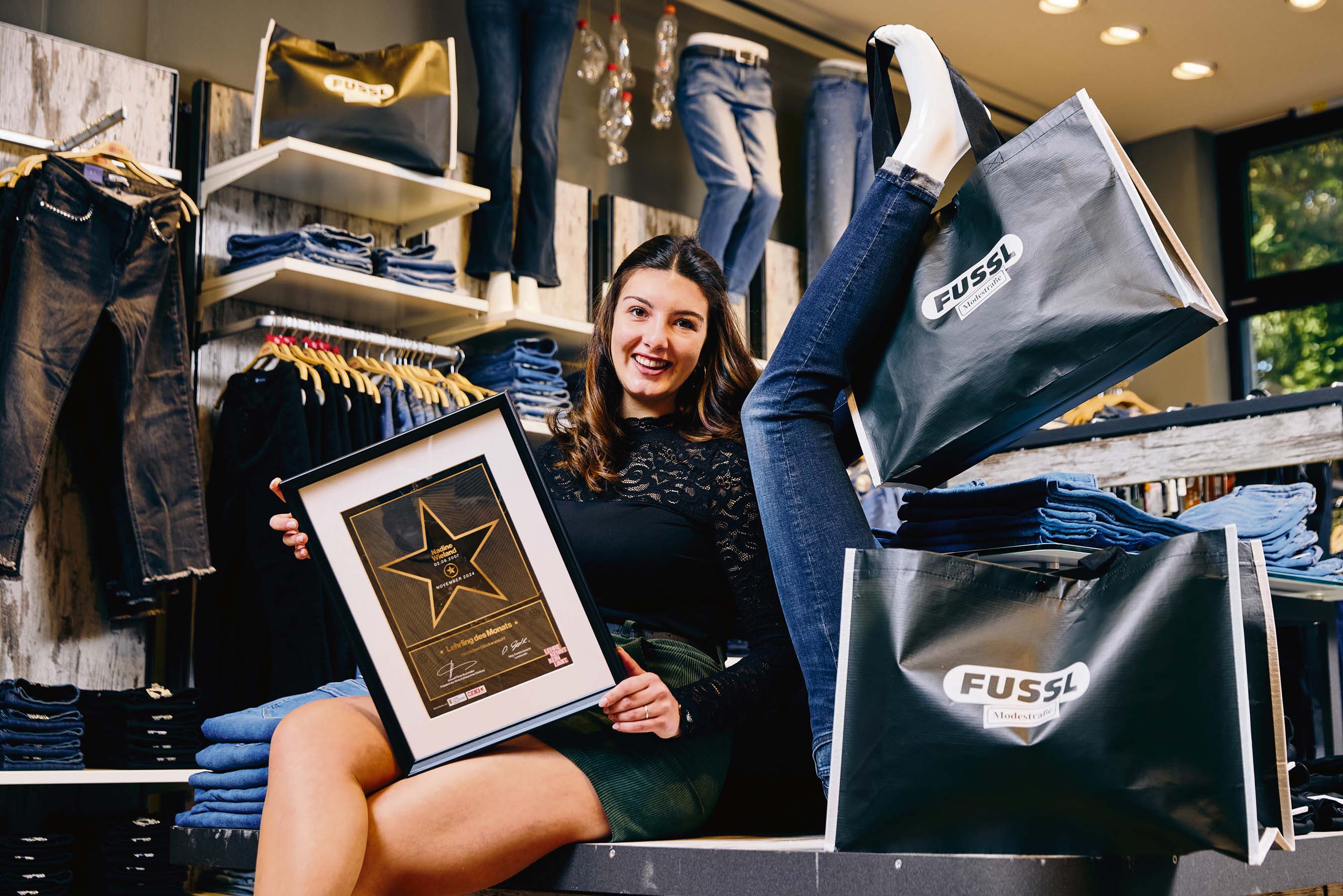 Auch der Lehrbetrieb ist vom Lehrling begeistert: „Nadine beeindruckt durch ihre aufgeschlossene und freundliche Art. Sie geht aktiv auf Kunden zu und schafft es mit Leichtigkeit, eine angenehme Atmosphäre zu schaffen. Diese natürliche Offenheit, kombiniert mit ihrer Fähigkeit, sich auf unterschiedliche Kundentypen einzustellen, zeichnet sie besonders aus. Ihr Ehrgeiz und ihre Lernbereitschaft lassen darauf schließen, dass sie eine vielversprechende Karriere vor sich hat, mit guten Chancen, in leitende Positionen aufzusteigen“, schildert Doris Jäger von der Fussl Modestrasse Mayr GmbH.