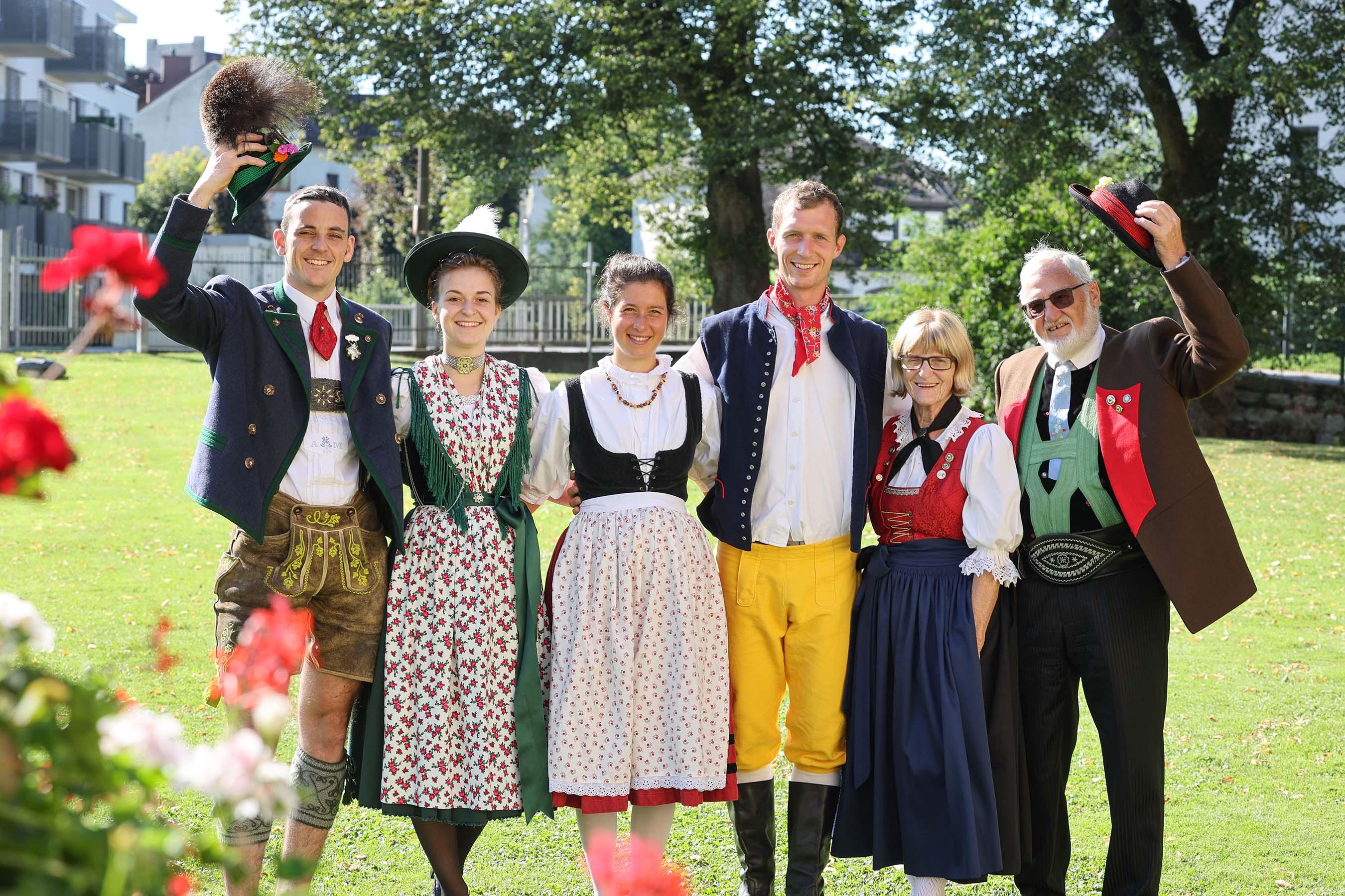 Foto 2: Beim 29. Salzburger Bauernherbst steht das Thema Tracht im Mittelpunkt. Im Bild (v. l.): Andreas Metzenleitner und Johanna Hogger (Trachtenpaar aus Bayern), Johana Schwarzová und Josef Havlíček (Trachtenpaar aus Tschechien) sowie Gertrude Feurstein und Robert Stiborek (Trachtenpaar aus Südtirol). Foto: SLTG/Neumayr