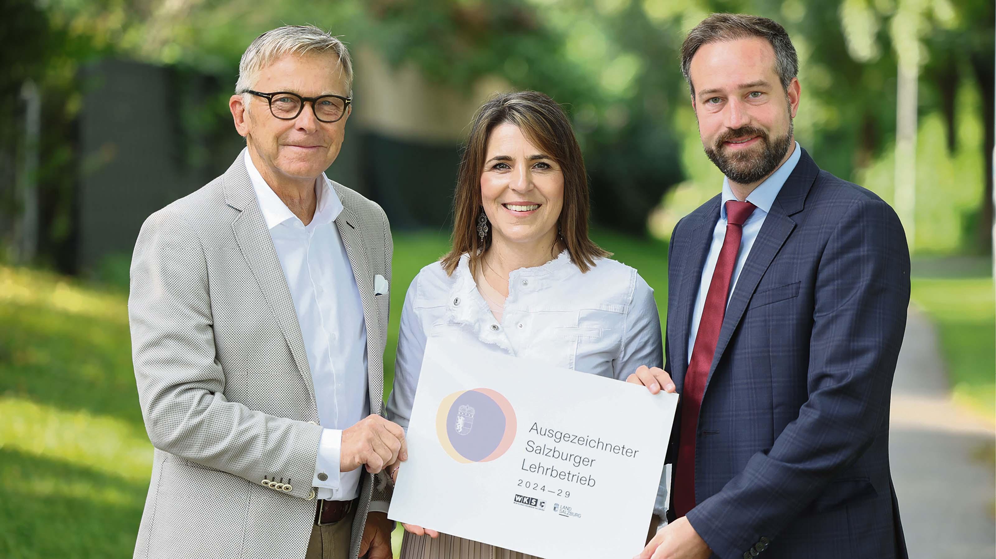 Foto: Bei der Präsentation des Gütesiegels „Ausgezeichneter Salzburger Lehrbetrieb“ (v. l.): WKS-Präsident Peter