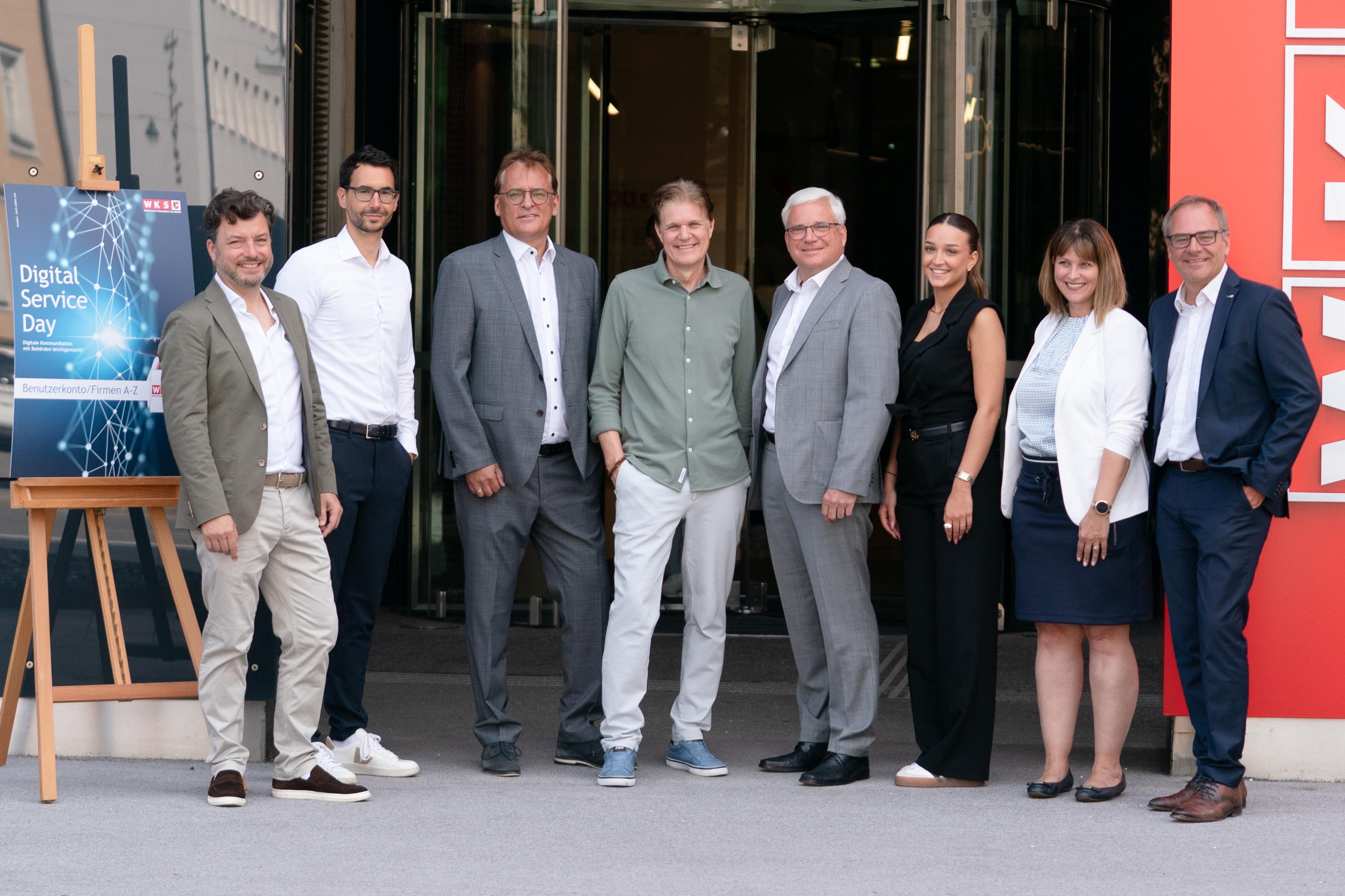 Foto 1: Geballte Expertise (v. l.) Lorenz Maschke (WKS), Roland Sigmund (Bundeskanzleramt), Klaus Höftberger (WKS), Jan Kremmel (klickexperten), WKS-Direktor-Stv. Gerd Raspotnig, Natalie Acimov (Finanzamt Salzburg), Dorothee Kouchmeshgi-Kranzinger (SVS Salzburg), Georg Huber (AMS Salzburg).