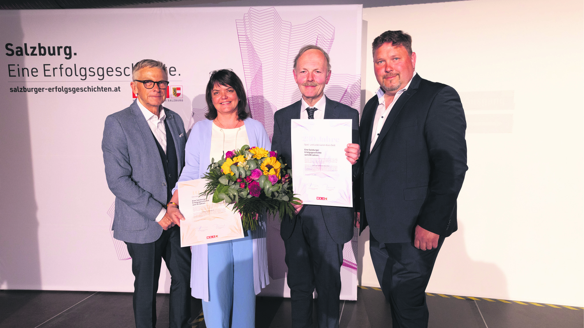 Neben vielen innovativen Betrieben wurden gestern Abend auch zwei Traditionsunternehmen vor den Vorhang geholt: Die Karl Reyer Sport und Mode Handels GmbH, die heuer ihr 100-jähriges Jubiläum feiert, sowie der bekannte Spielwarenhändler KommR Alois Oedl, der mit seinem Spielwarengeschäft heuer sein 230-jähriges Firmenjubiläum feiert. „Die Erfolgsgeschichte unseres Familienunternehmens begann am 20. Mai 1794, als Franz Oedl Teilhaber eines Holzwarenverlags wurde. An diesem Tag kam auch das Haus am Unteren Markt in Hallein in den Besitz der Familie“, berichtete Oedl. In diesem führt der Unternehmer auch heute noch den Spiel- und Lederwarenhandel. Damit setzt er seit 46 Jahren und in sechster Generation eine jahrhundertealte Tradition in Hallein fort.