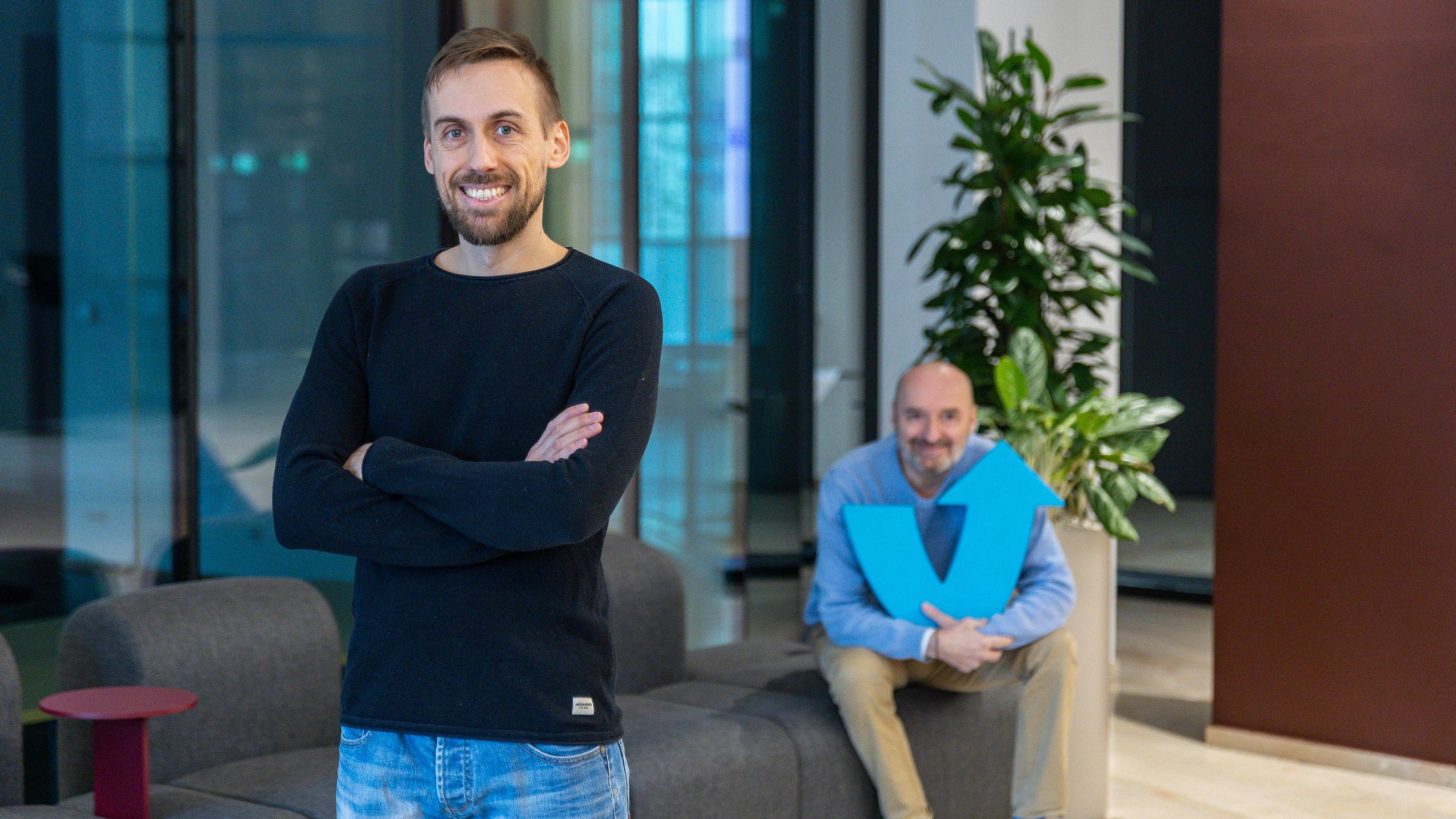 Foto 1: Einer der Salzburger Gründer ist Ben Korbach, der sich vergangenes Jahr mit seiner AI Impact Academy selbstständig gemacht hat. Tipps auf dem Weg ins Unternehmertum bekam er von Peter Kober (rechts), dem Leiter des WKS-Gründerservice.
