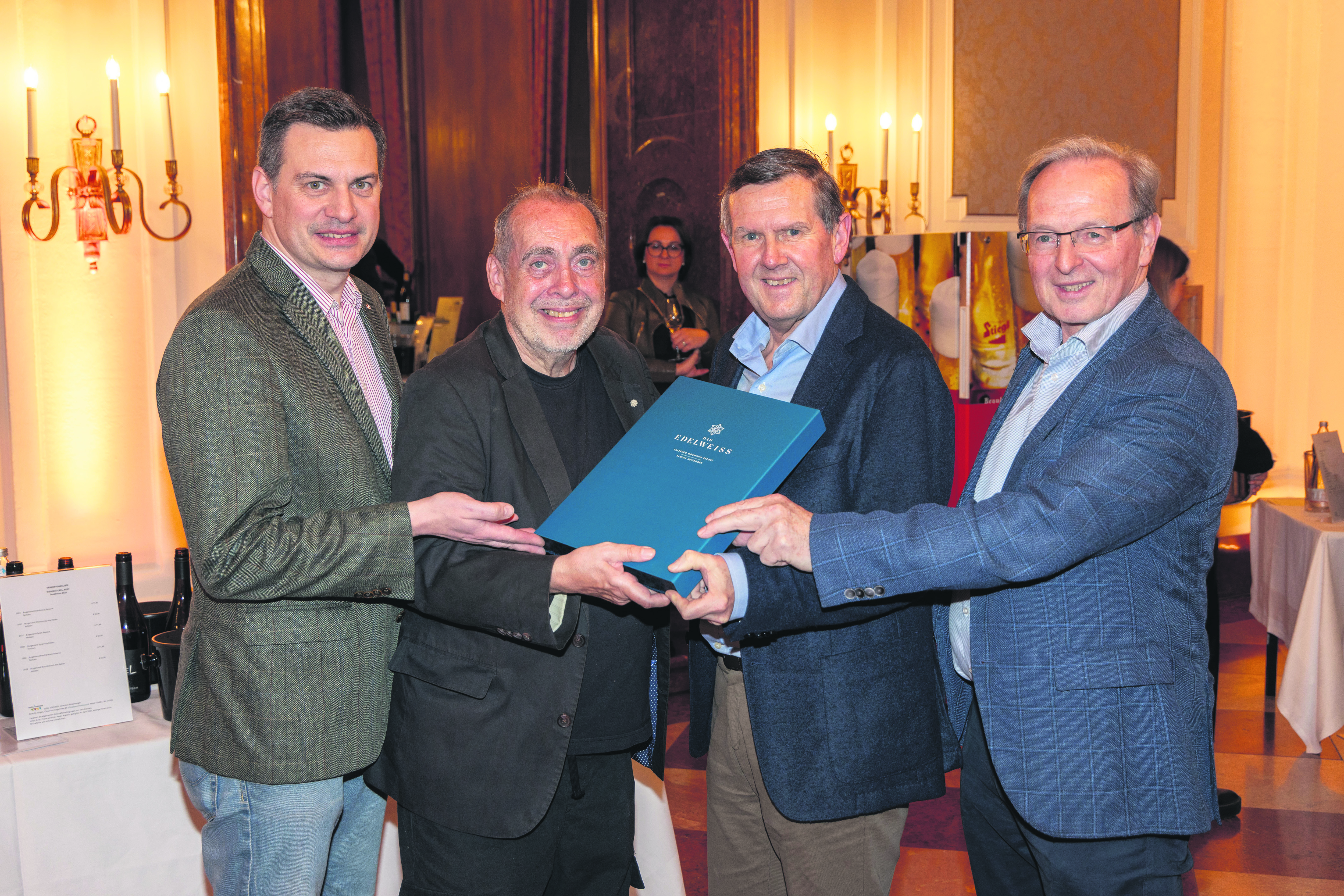 Bild 2: Juvavinum Gewinner: Der Hauptpreis beim JuvaVinum-Gewinnspiel, ein Aufenthalt im „Das Edelweiss – Salzburg Mountain Resort“ in Großarl, ging an Manfred Siebinger aus der Stadt Salzburg (2. v. l.). Obmann Johannes Einzenberge, Gremialgeschäftsführer Johann Peter Höflmaier und Heinrich Hartl, Obmann der Thermenregion DAC (v. r.) gratulierten.