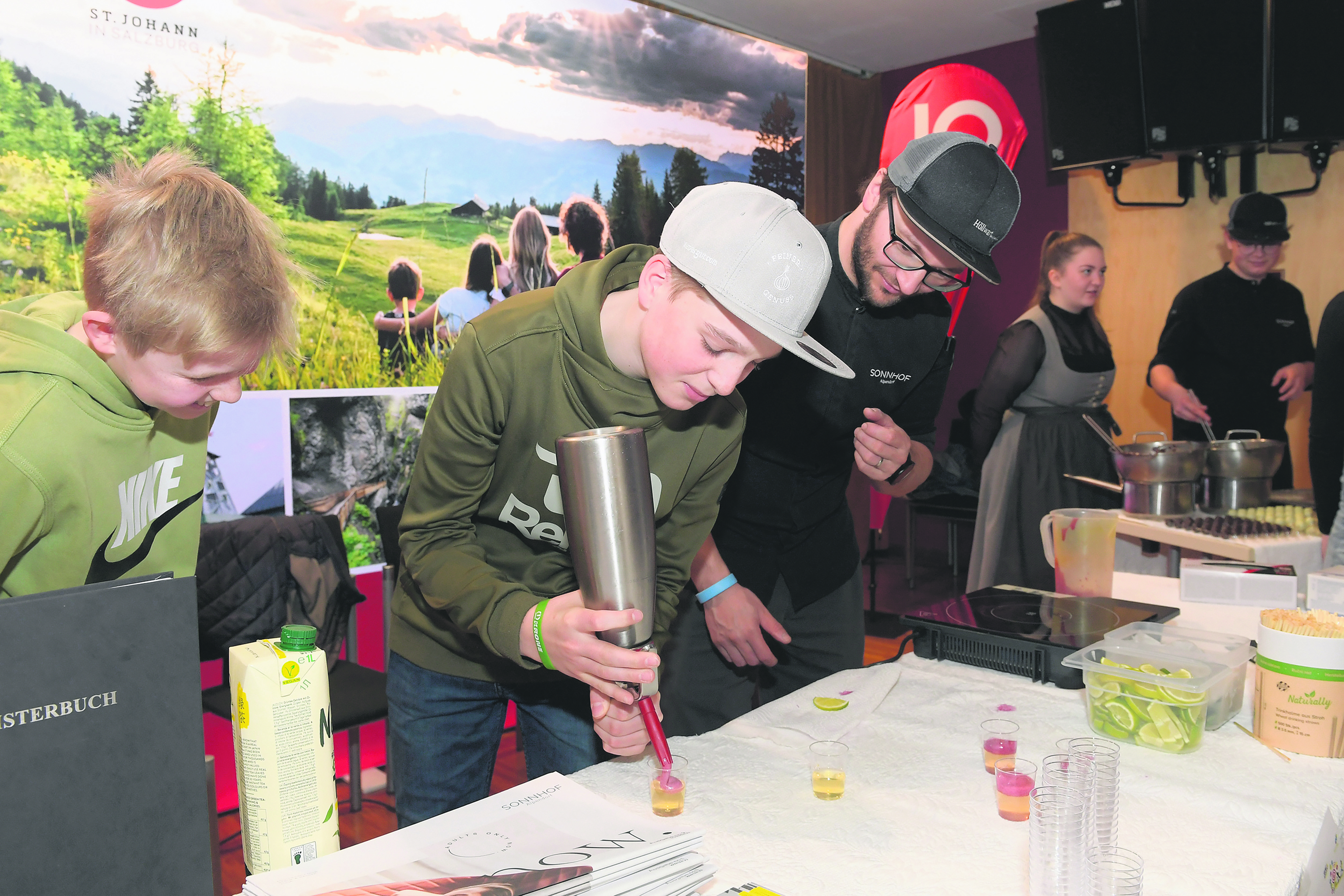 Die Jugendlichen informierten sich bei mehr als 20 Betrieben aus dem Pongau über die verschiedenen Ausbildungs- und Karrieremöglichkeiten im Tourismus. Dabei konnten sie auch selbst ihr Talent testen und verschiedene Tätigkeiten wie Flambieren oder Getränke mixen ausprobieren.