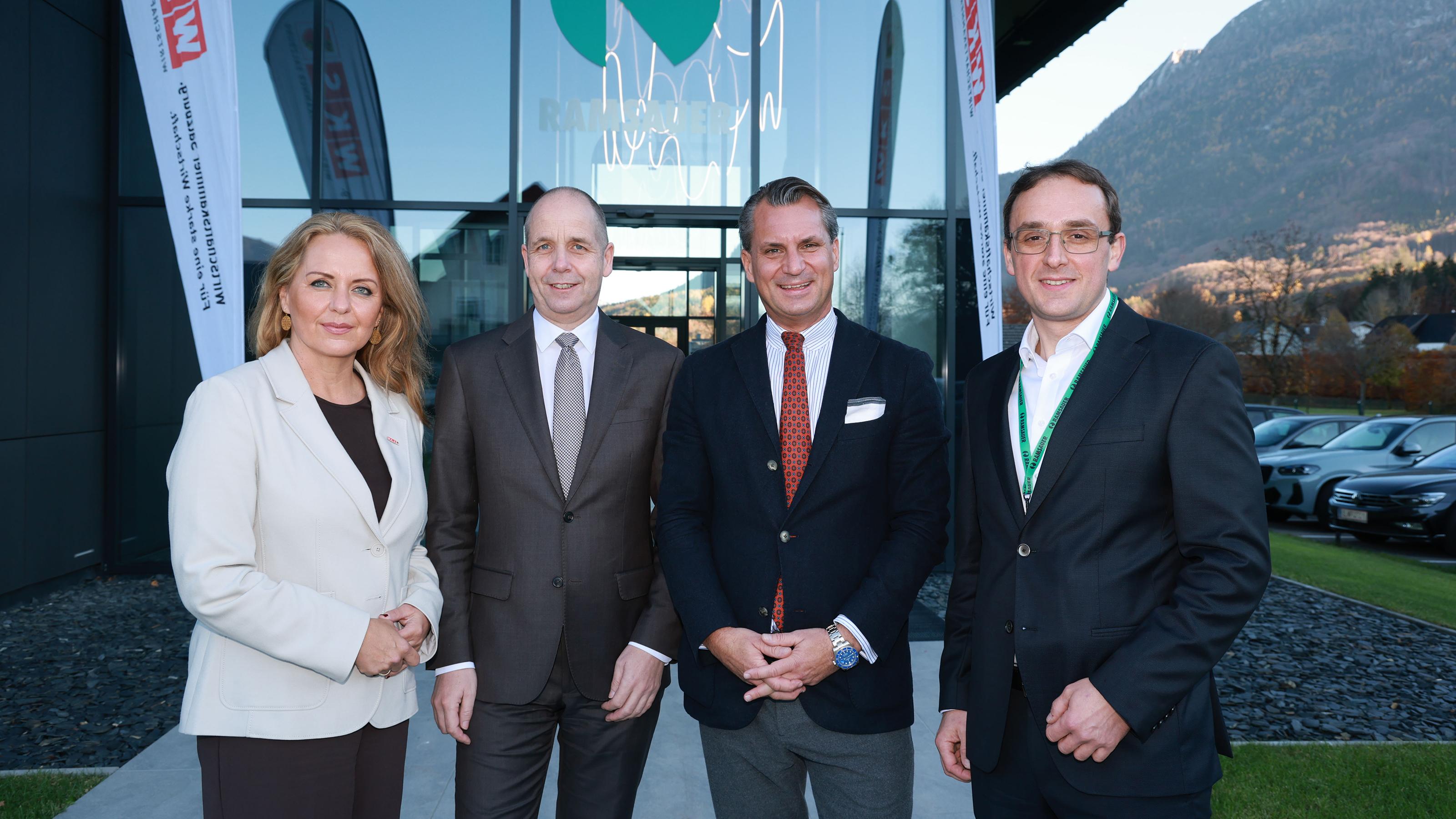 Foto 3: Beim Industrietag (v. l.): Spartengeschäftsführerin Anita Wautischer, Ökonom Holger Bonin (IHS), Spartenobmann und IV-Präsident Peter Unterkofler und Kornelius Kurz (Ramsauer GmbH).