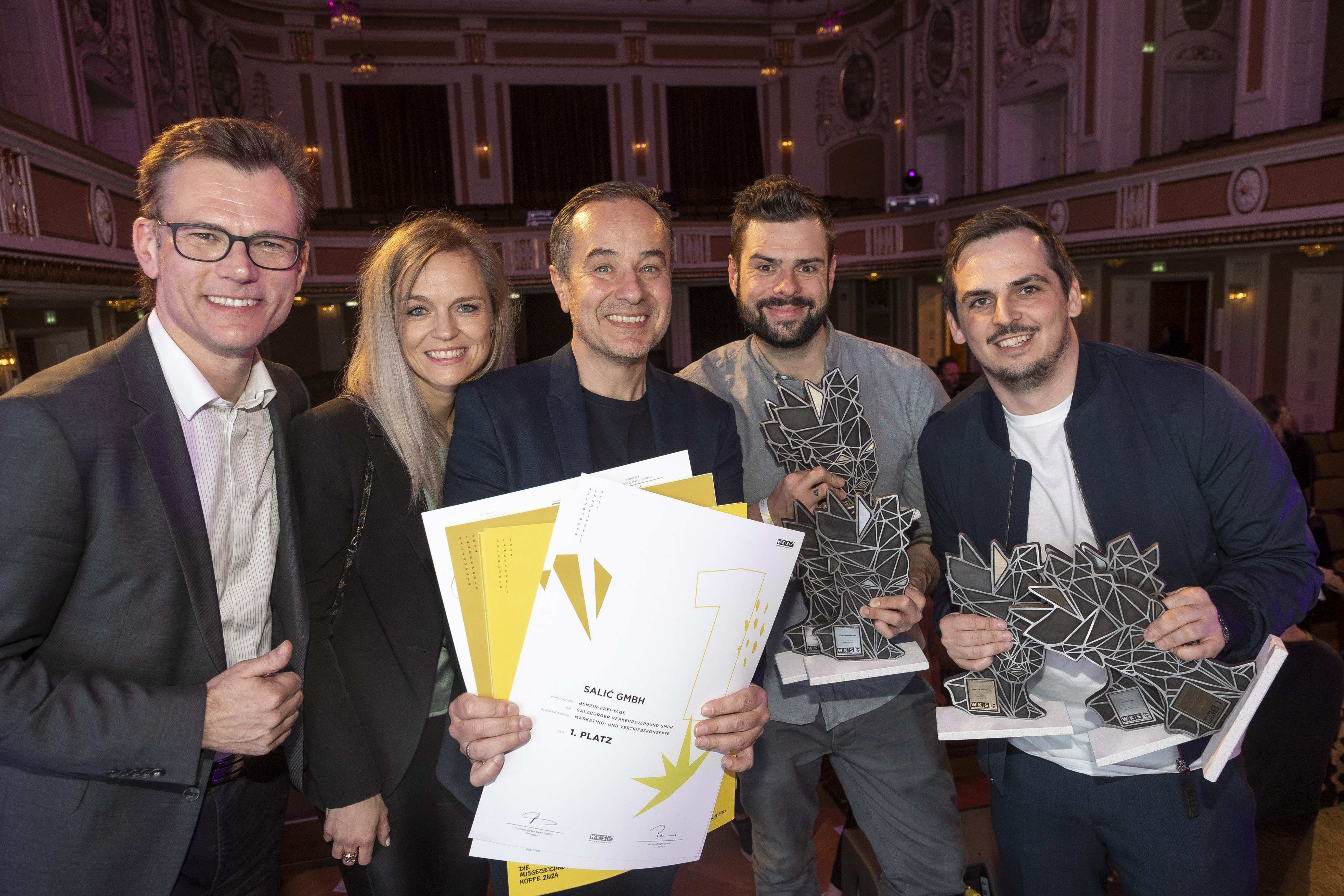 Die mit Abstand meisten Siege in den insgesamt 17 Kategorien verbuchten diesmal die Agenturen Salić GmbH (3 x Gold/3 x Silber und 3 x Bronze) Creative Tactics (1 x Gold/3 x Silber) und KWER (1 x Gold/1 x Silber/2 x Bronze). „Wir haben eine Riesenfreude, weil wir ehrlich gesagt nicht damit gerechnet haben, so viele Trophäen abzuräumen. Der Wettbewerb ist über die Jahre immer besser geworden, die Jungen kommen nach und viele der Projekte haben internationales Niveau“, betonte Christian Salić. „Es war ein spannender Abend in einem wunderschönen Rahmen“. Zu den „Abräumern“ zählte auch die Agentur KWER rund um Maximilian Tosch, für den die Gewinne ein Leistungsnachweis für die hervorragenden Arbeiten sind: „Wir freuen uns riesig, dass wir mit so arrivierten Agenturen wie mit der Salić GmbH mitspielen dürfen“, betonte Tosch, für den der Salzburger Landespreis für Marketing, Kommunikation und Design ein freundschaftlicher Wettbewerb ist.