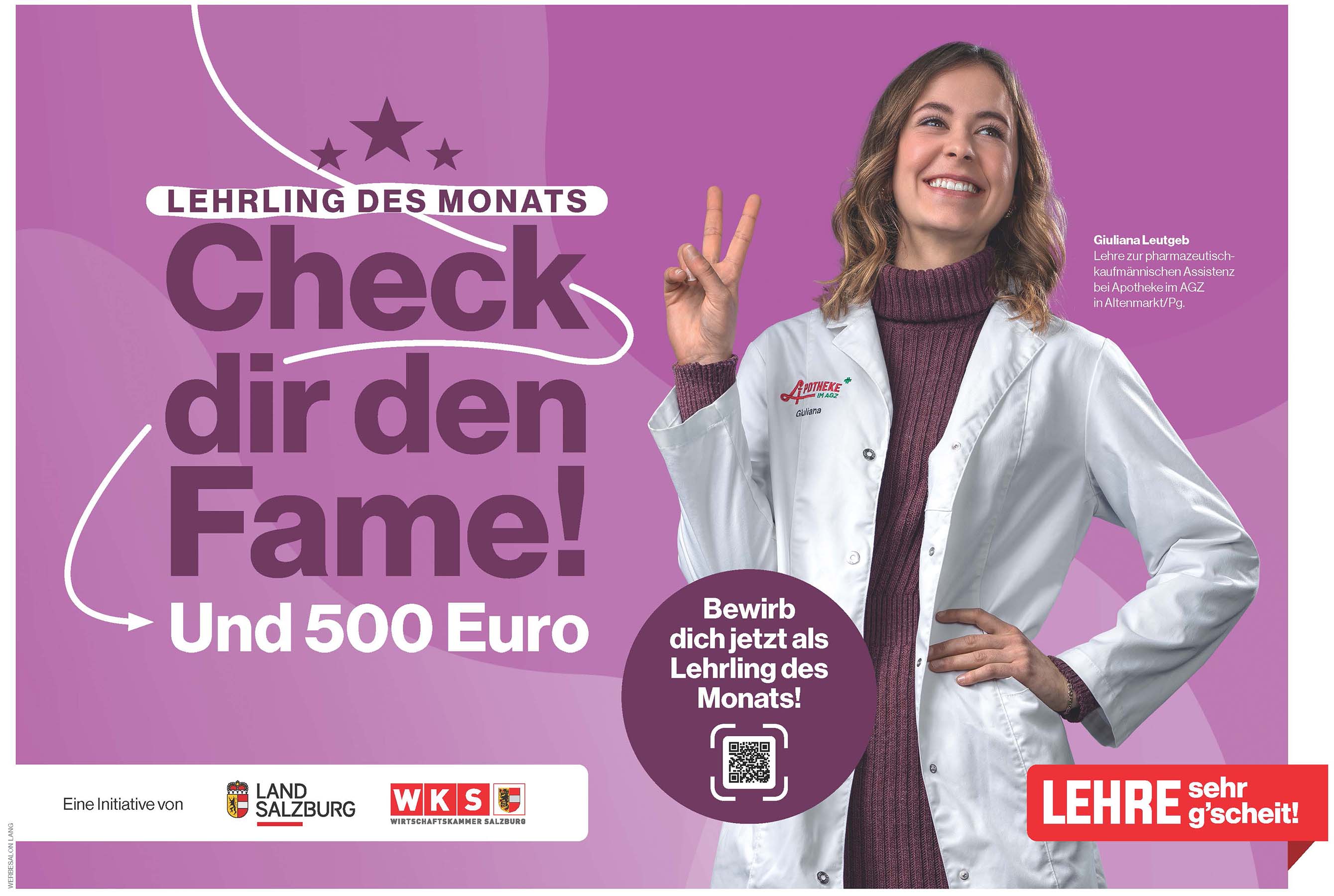 Gemeinsam mit dem Land Salzburg macht sich die Wirtschaftskammer Salzburg seit Jahresbeginn jeden Monat auf die Suche nach beeindruckenden Nachwuchstalenten und zeichnet den „Lehrling des Monats“ aus. Dabei stehen die Leistungen der Lehrlinge und die umfassenden Ausbildungsmöglichkeiten im Rahmen von Lehrberufen im Mittelpunkt. Auf den „Lehrling des Monats“ wartet ein attraktiver Preis: Neben einer Urkunde bekommt er einen „Wunsch-Gutschein“ im Wert von 500 €. Die Prämierung und ein Fotoshooting finden im Lehrbetrieb des Lehrlings statt.
