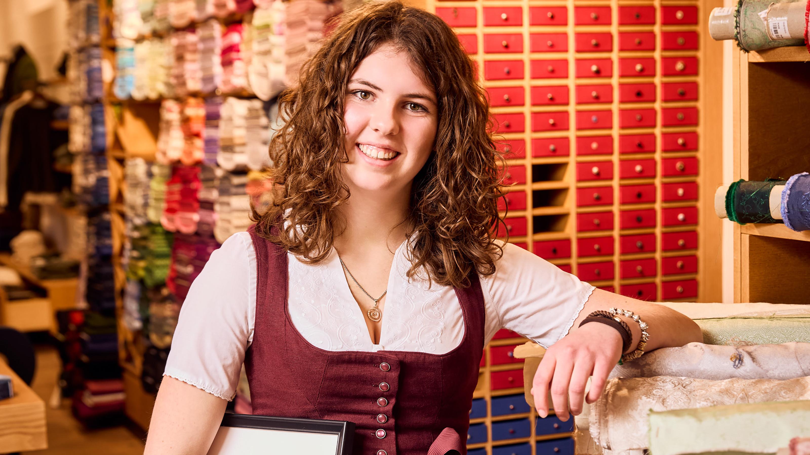 Sophia Wesenauer aus Fuschl am See ist Lehrling des Monats Jänner. Beim Salzburger Heimatwerk eG absolviert sie ihre Lehrausbildung zur Verkäuferin und kombiniert diese mit der Lehrausbildung zur Bekleidungsgestalterin.