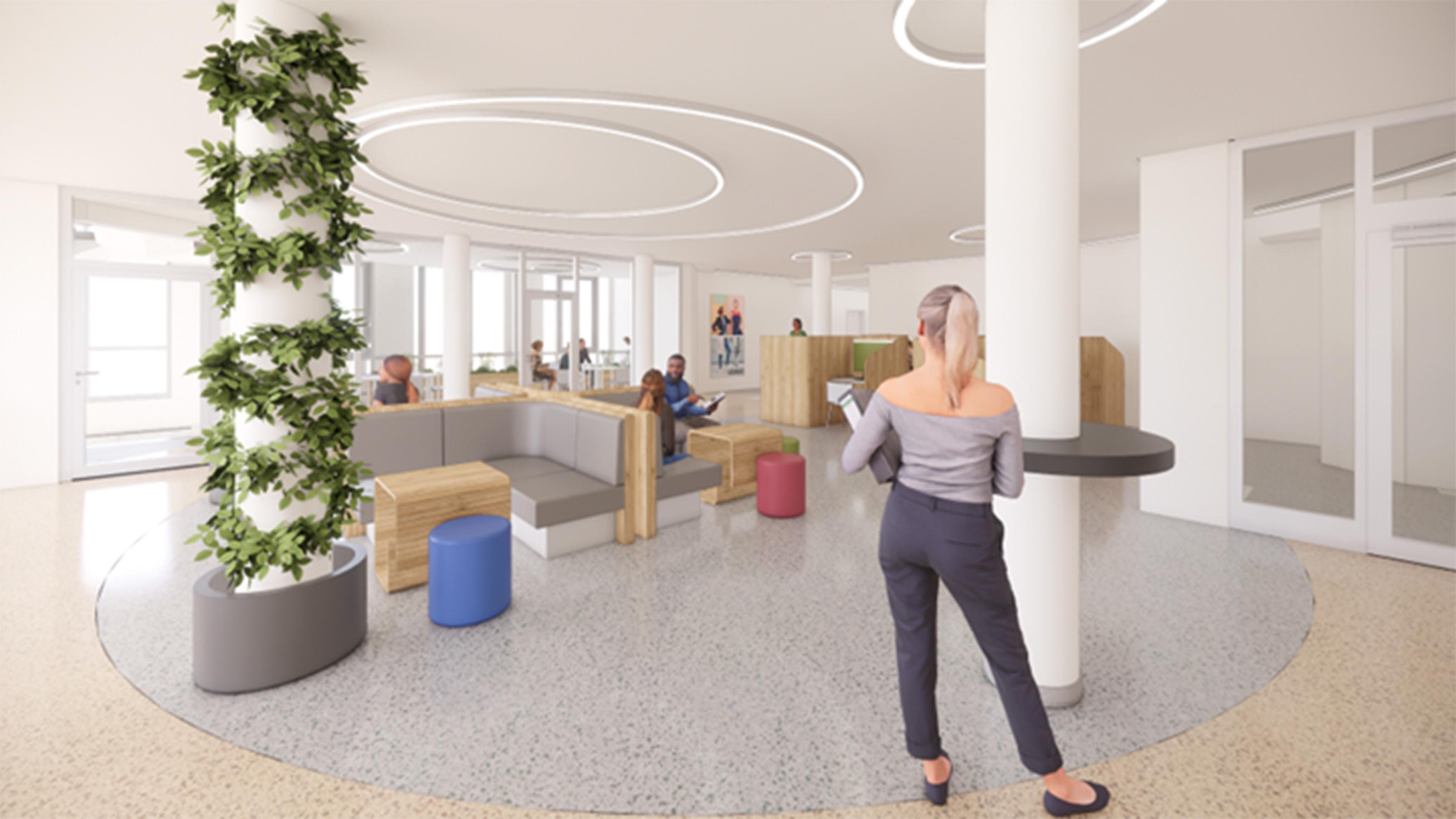 Foto 1: Im Zuge der Renovierung gibt es dann im WIFI neue Bereiche für „Offenes Lernen“. © Marius Projekt ZT GmbH