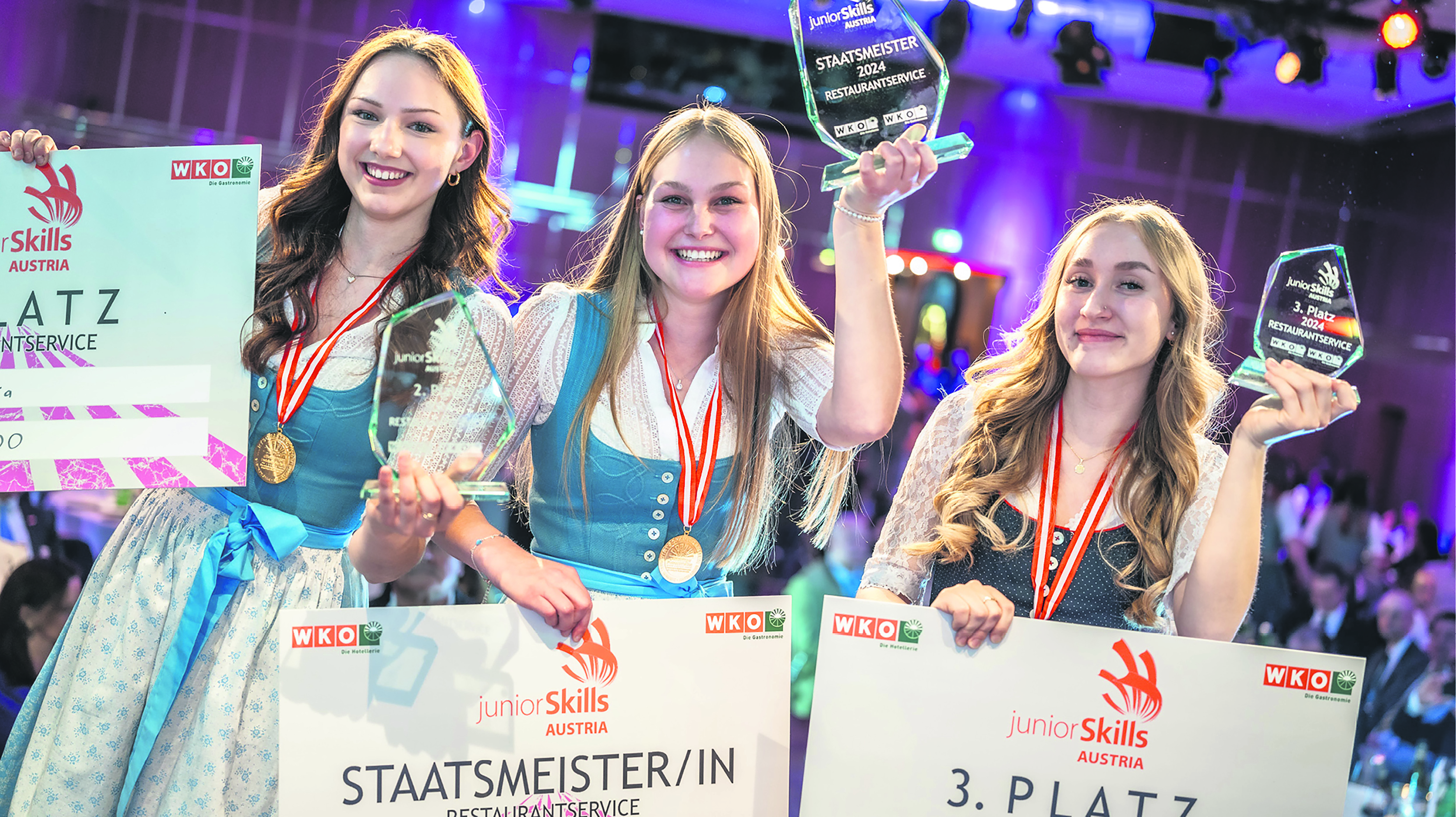 Schließlich belegte das Team Salzburg in der Bundesländerwertung den hervorragenden ersten Platz (vor der Steiermark und Vorarlberg). Außerdem gab es einen Staatsmeister- und einen Vizestaatsmeistertitel zu feiern: Emily Langegger von der Familie Schernthanner KG in Leogang war im Bereich Restaurant-Service eine Klasse für sich und holte sich die Goldmedaille. Dahinter platzierte sich Daria Gelic von der Bergdorf Priesteregg GmbH, ebenfalls in Leogang, auf Rang zwei. Beste in der Küche wurde schließlich die Tirolerin Anna Lea Hausberger, den Bereich Hotel- und Gastgewerbeassistent (HGA) entschied die Steirerin Verena Pöttler für sich.