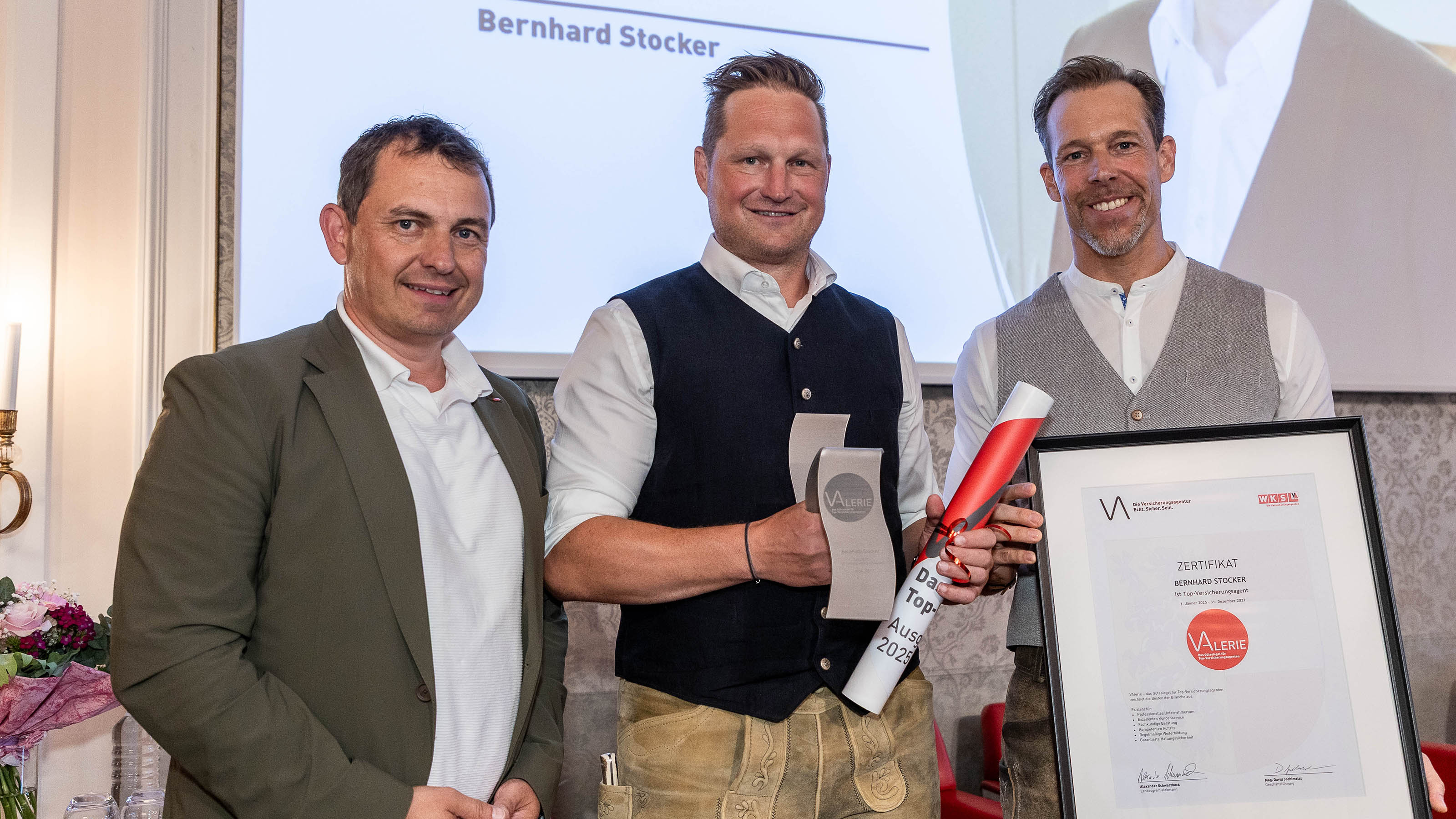 18 Versicherungsagenten haben sich um das neue Branchengütesiegel „VAlerie“ beworben und erfolgreich bestanden – sie zählen damit zu den Besten der Besten in Salzburg. „Der Erhalt dieses Gütesiegels ist keine Selbstverständlichkeit. Die 18 Versicherungsagenten beweisen mit ihrer Leistung, dass sie die höchsten Qualitätskriterien erfüllen“, betont Schwarzbeck. Die „VAlerie“ stehe für Unternehmertum, Kundenservice, Beratung, Marketing, Weiterbildung und Haftungssicherheit, so der Obmann.