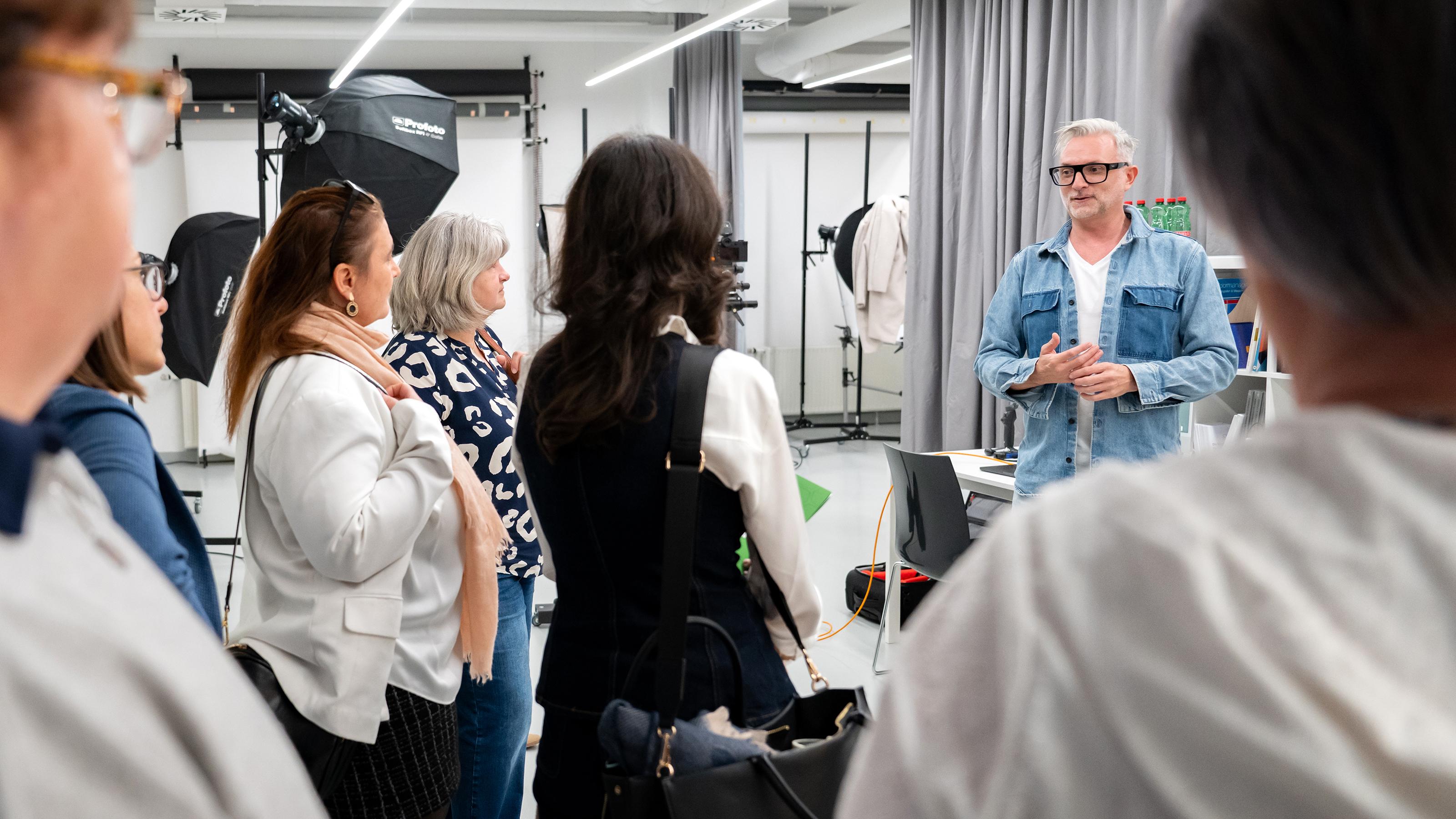 Foto 1: Bei der WIFI-Eröffnung erkundeten die Besucher die neuen Werkstätten und Stationen zum Ausprobieren. Im Bild zu sehen: das Fotostudio. © Hannelore Kirchner