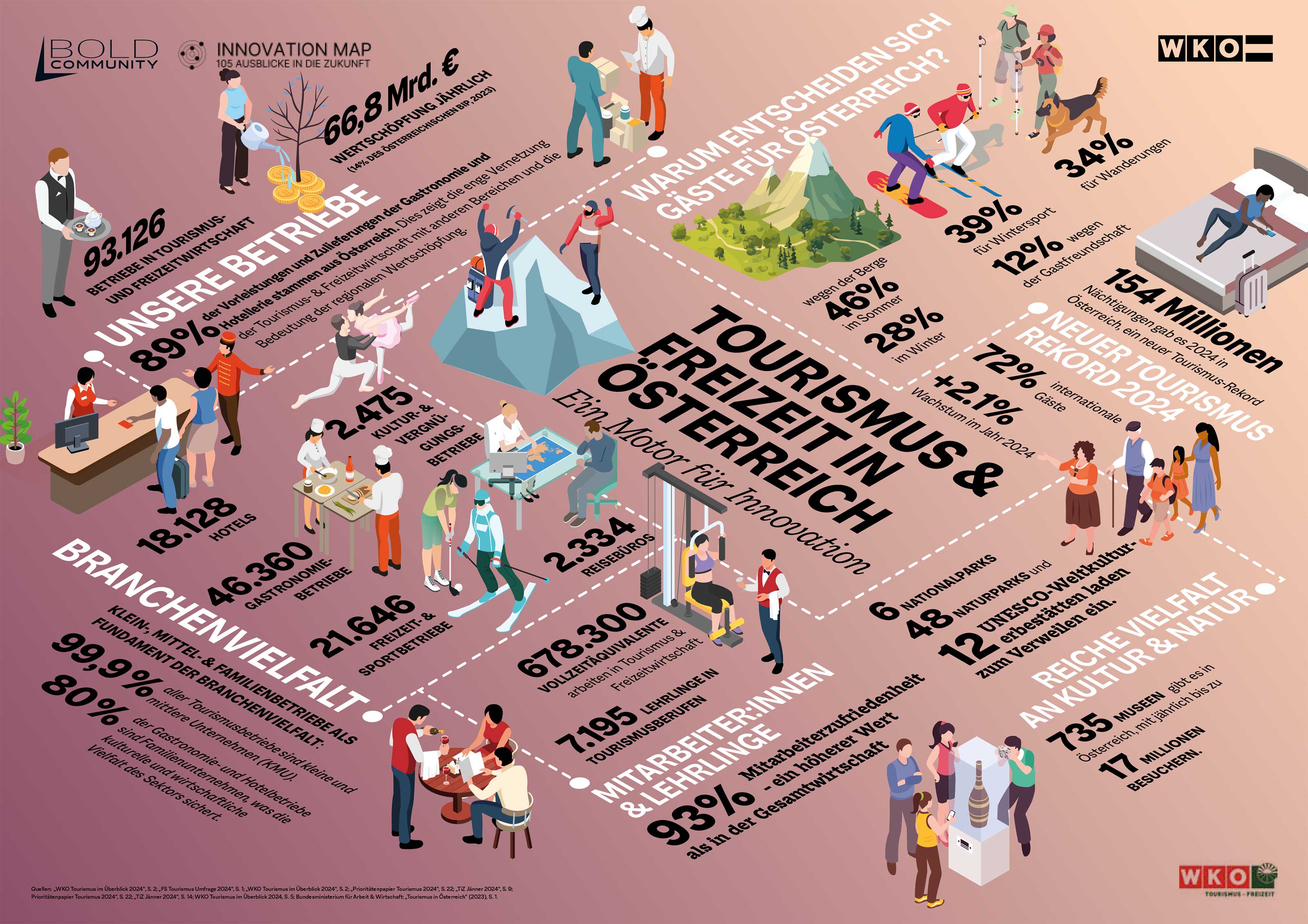 Die Tourismus- und Freizeitwirtschaft ist – mit rund 90.000 Betrieben, insgesamt 500.000 Mitarbeiter:innen sowie einer Wertschöpfung von über 13 Mrd. Euro – unverzichtbarer Impulsgeber für Österreichs Wirtschaft.