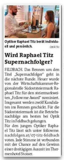 Raphael Titz aus Feldbach geht bei Wahl für Nachfolger des Jahres ins Rennen - 25. September 2024
