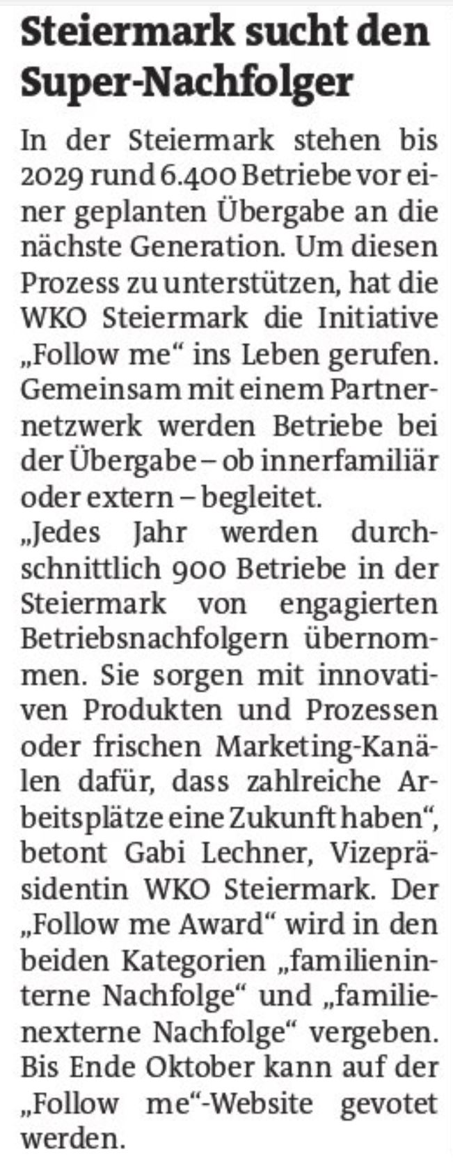 Steiermark sucht den Super-Nachfolger des Jahres - 30. September 2024
