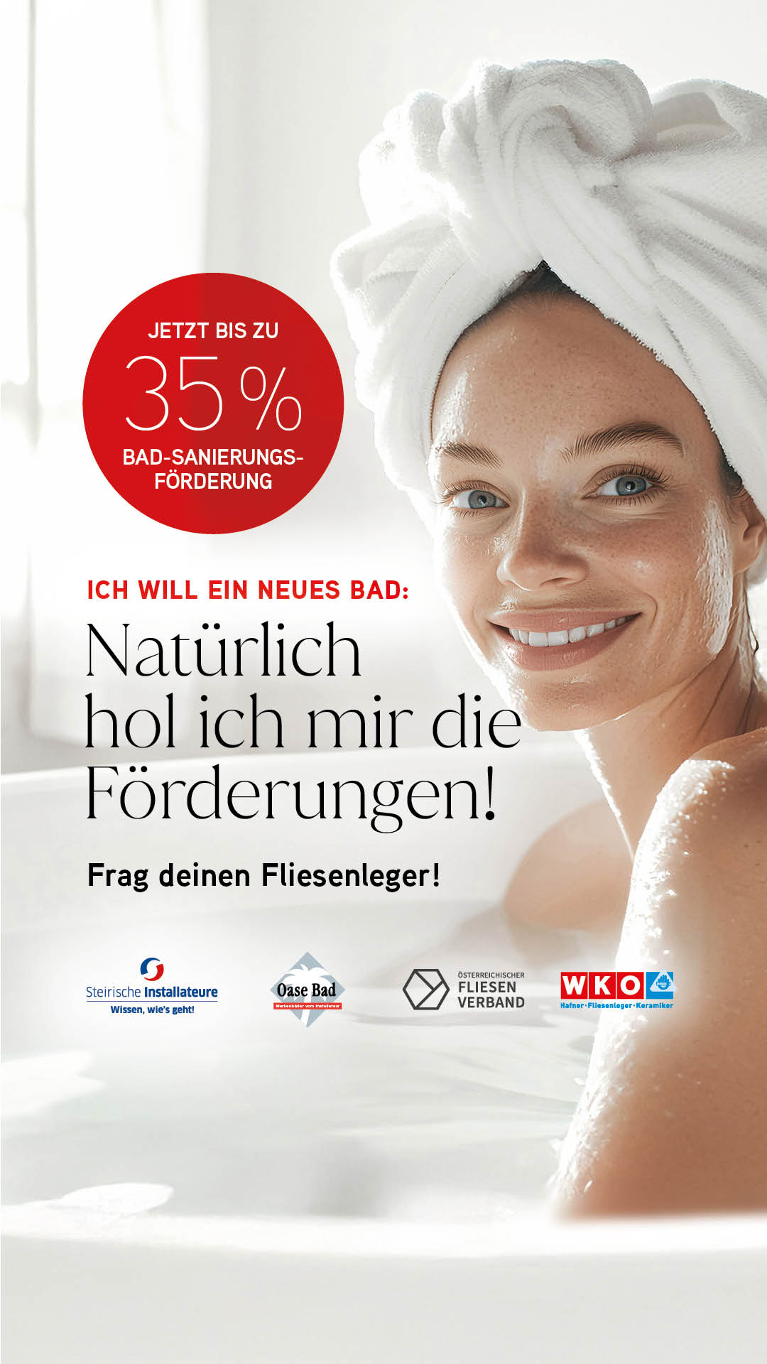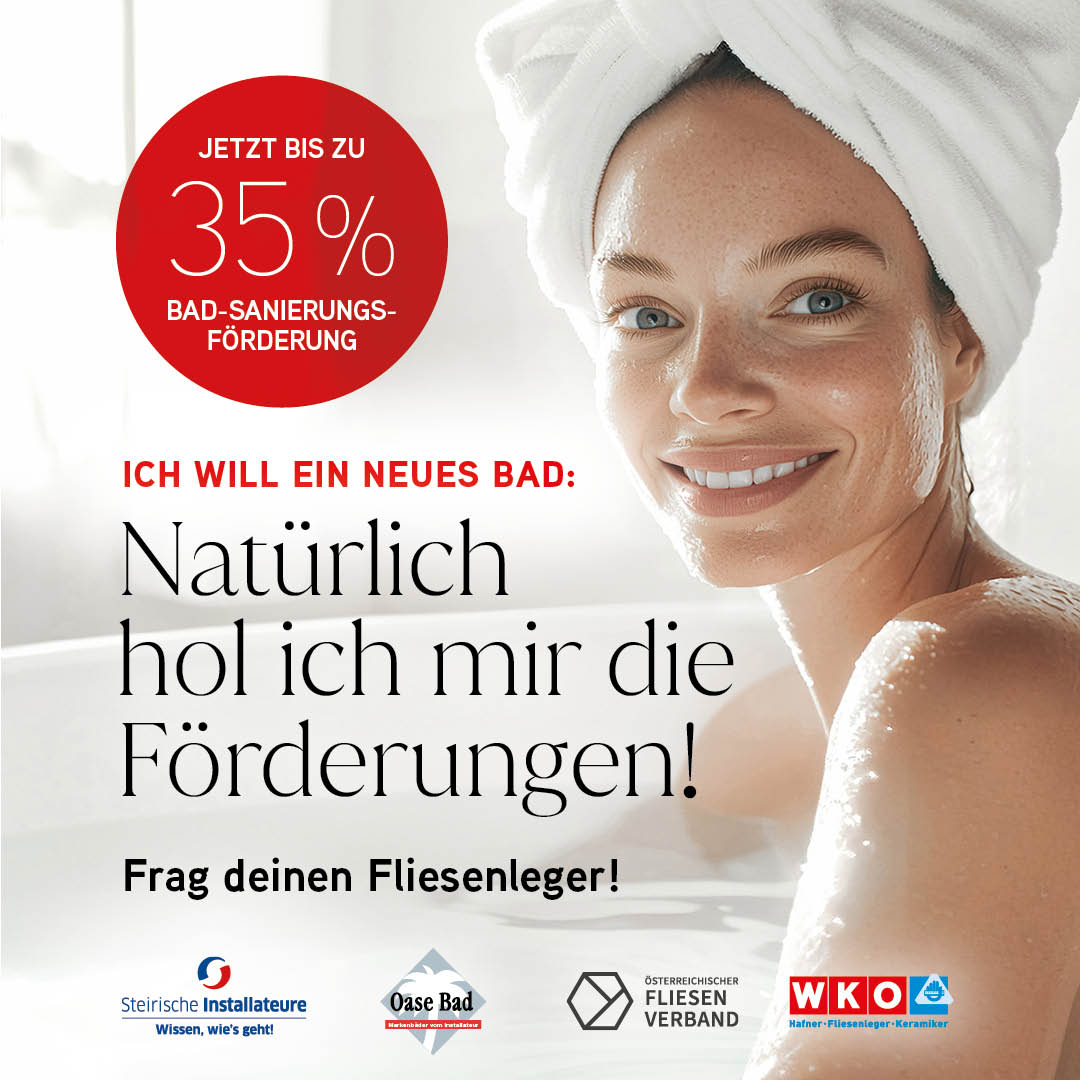 Die große Werbekampagne mit unseren Kampagnenpartnern der Landesinnung der Sanitär-, Heizungs- und Lüftungstechniker, Österreichischen Fliesenverband und dem OaseBad, läuft auch 2025 mit einer steiermarkweiten Inseraten und einer Social-Media-Kampagne weiter.