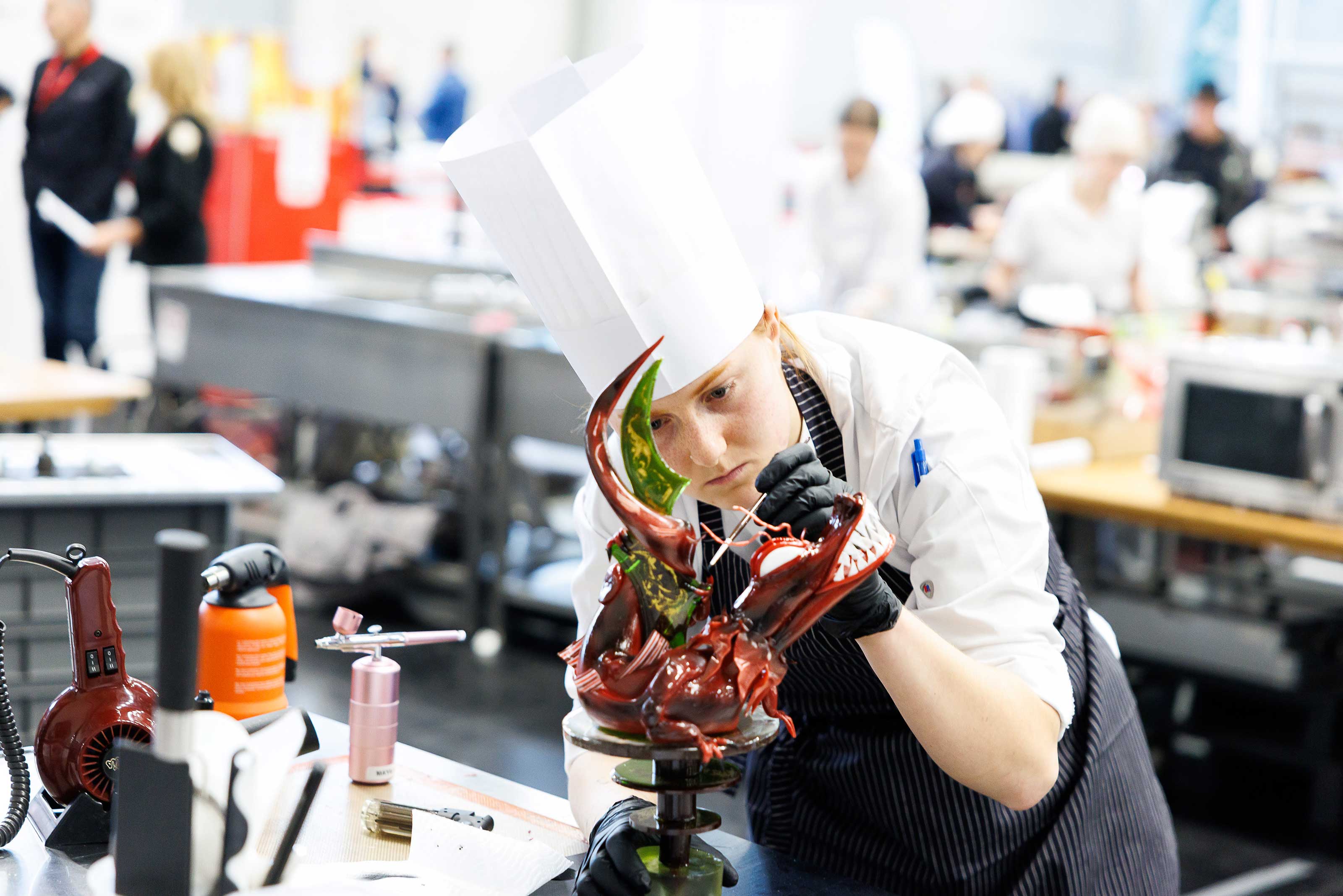 Die acht Nachwuchskonditorinnen haben mit kreativen und handwerklichen Spitzenleistungen das Publikum beeindruckt. In insgesamt 18 Stunden Arbeitszeit entstanden unter dem Motto "Taste of Asia" kunstvolle Petit Fours, Schaustücke aus Zucker und Schokolade sowie innovative Schokoriegel. Die Arbeiten spiegelten auf höchstem Niveau das große Engagement und die Leidenschaft unseres Berufsstandes wider.