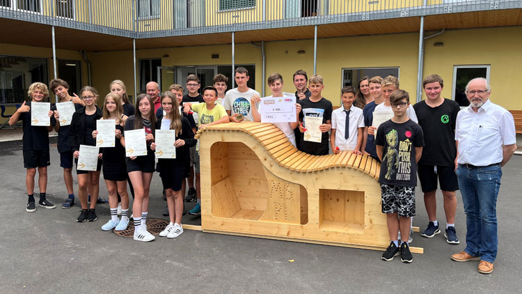 Lehrerin Ulrike Tuttner begleitete die Schüler. Als Patronanztischler stand ihnen Harald Almer zur Seite.