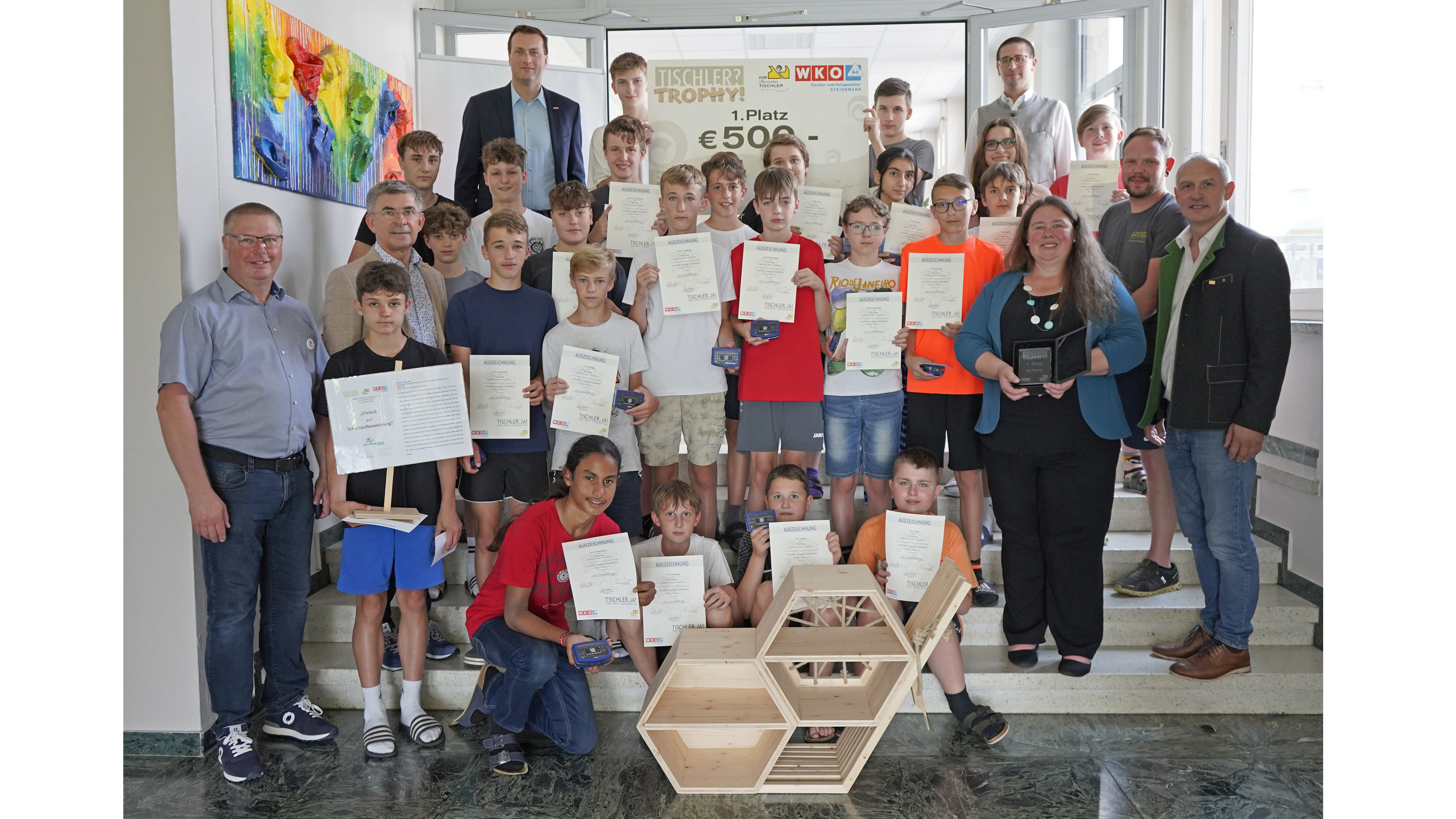 Hobelspäne fliegen, Maßbänder liegen herum und fleißige Schülerhände sind am Werkeln - das war die Tischler Trophy 2024! Es traten verschiedene Teams an, die jeweils von einem Tischlerbetrieb unterstützt wurden. Heuer war ein Vieleck zur Schuhaufbewahrung zu bauen. Das Material bestehend aus Dreischichtplatten und Leisten war für alle Teams dasselbe, sodass für größtmögliche Fairness gesorgt wurde.