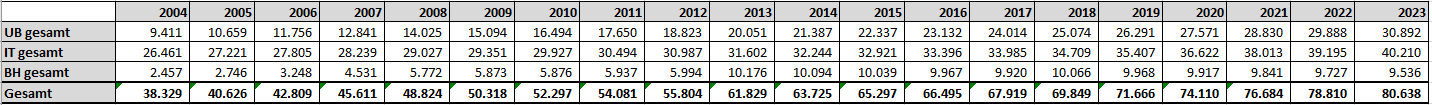 Der Fachverband UBIT vertritt die Berufsgruppen Unternehmensberatung (UB), Informationstechnologen (IT) und Buchhaltungsberufe (BH). Der Trend des Mitgliederzuwachses geht stark nach oben. Die nachfolgende Grafiken veranschaulichen diese Entwicklung.