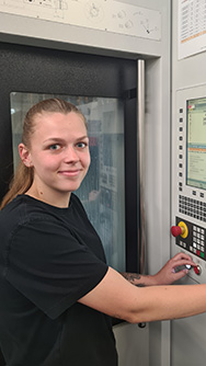 Julia ist eine begeisterte Zerspanungstechnikerin im Bereich 5 Achs CNC Fräsen. Zukünftig wird sie auch den Bereich der Lehrlingsausbildung übernehmen und ihr Wissen an die zukünftigen Lehrlinge bei FISCH TOOLS weitergeben.