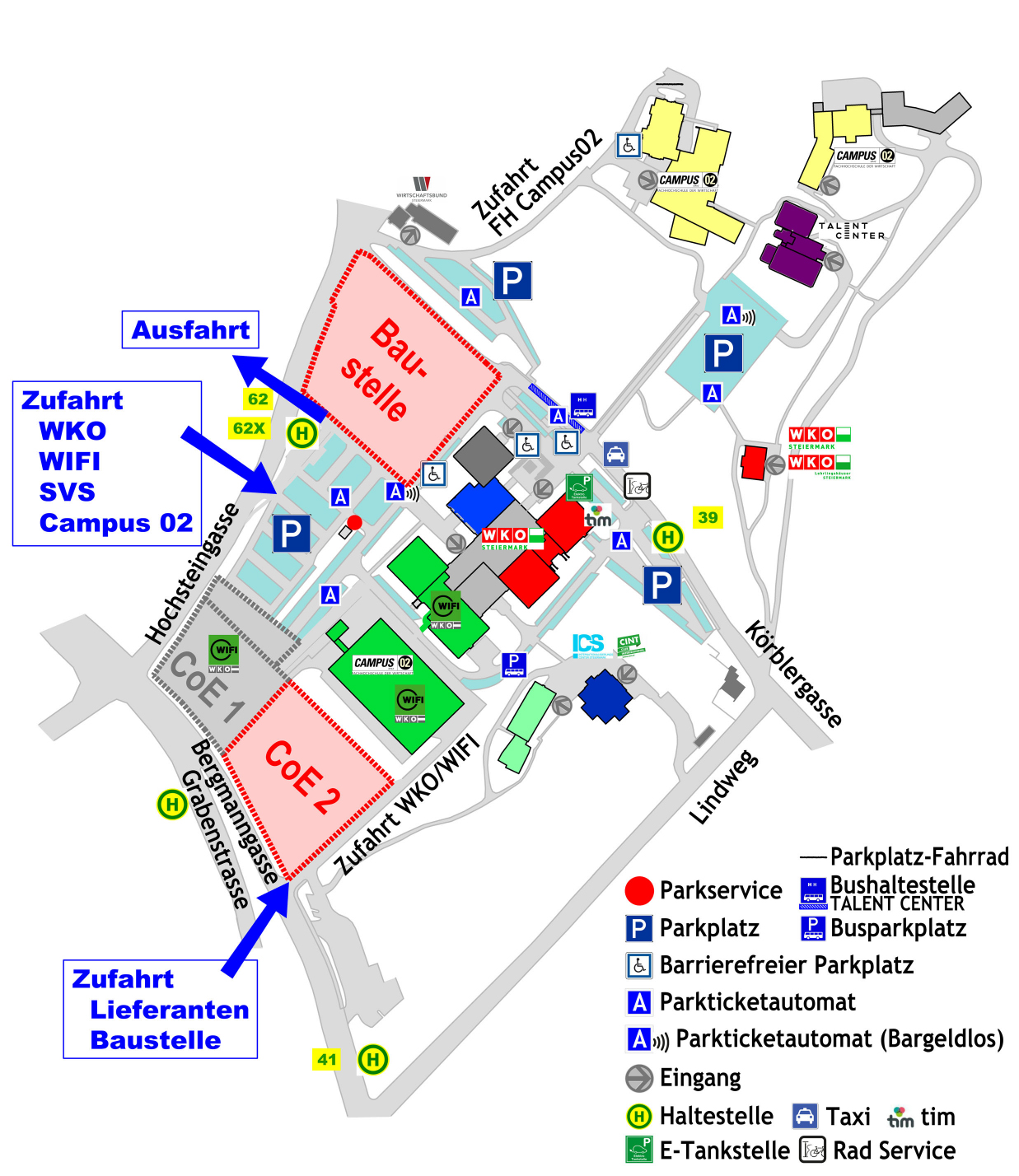 Aufgrund der umfassenden Investitionen in die Bildungsinfrastruktur und den damit verbundenen Bauaktivitäten ist mit einer deutlichen Verschärfung der Parkplatzsituation am Standort Graz der WKO Steiermark zu rechnen.