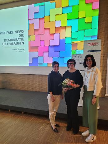 Im Zuge der Roadshow hielt Dr. Ingruber in jedem Bezirk einen Vortrag zum Thema Fake News. Die Teilnehmer:innen folgten gespannt wie die Demokratie- und Kriegsforscherin den Einfluss von Fake News auf die Demokratie erläuterte und veranschaulichte, wie man sowohl im privaten, als auch im beruflichen Umfeld am besten damit umgeht.