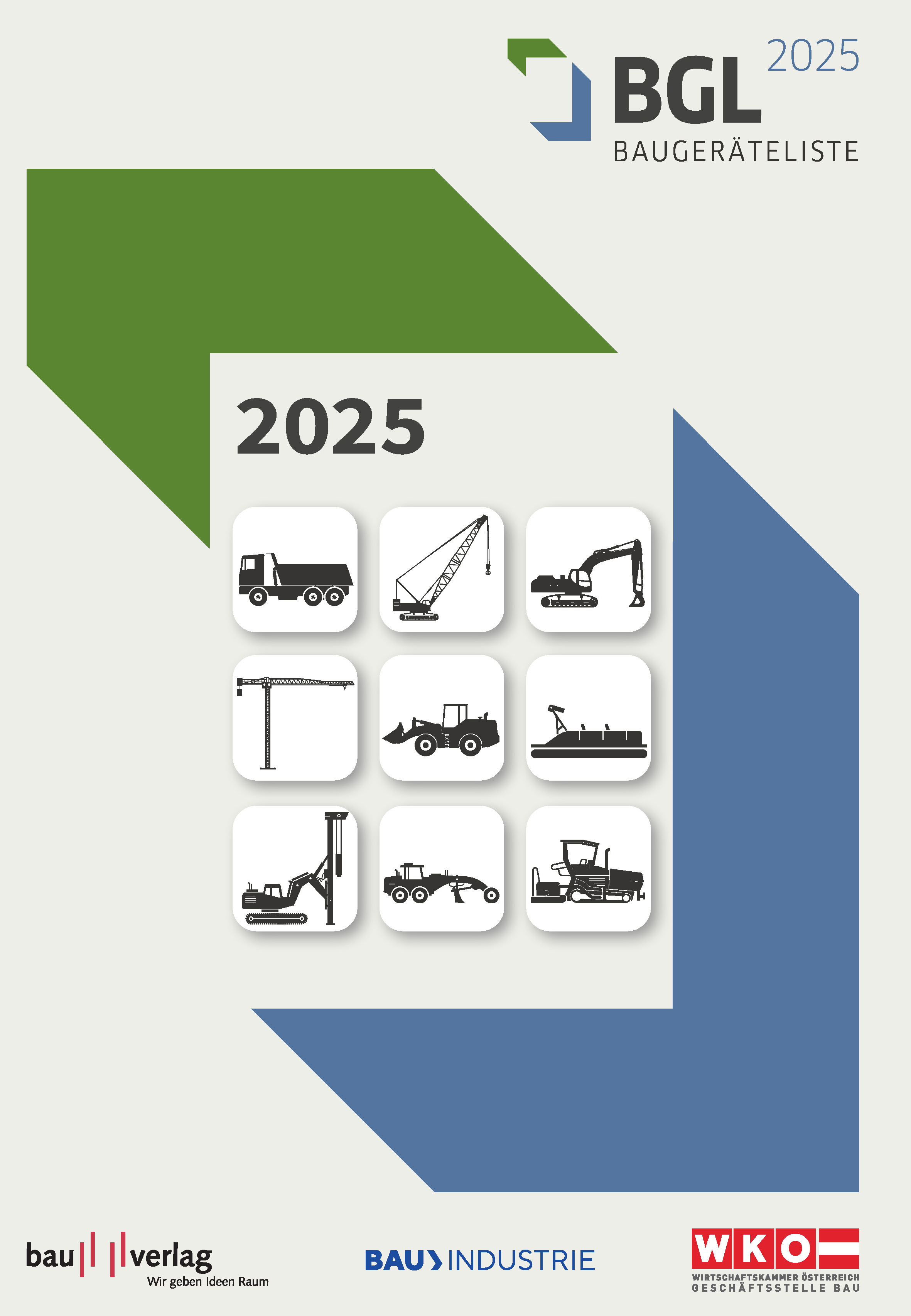 Am 2. Juni 2025 erscheint die BAUGERÄTELISTE (BGL) 2025. Die BGL 2025 ist mit über 15.000 Datensätzen der weltweit größte Katalog für Baumaschinen und Baugeräte und seit vielen Jahrzehnten anerkanntes Standardwerk für die Verrechnung von Gerätekosten. Sie beinhaltet alle für die Bauausführung und Baustelleneinrichtung gängigen Gerätearten und Gerätegrößen. Die einzelnen Positionen enthalten technische und wirtschaftliche Durchschnittswerte, ergänzt durch Erläuterungen zur Konstruktion und Ausstattung sowie für den betrieblichen Einsatz.