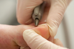 Überschüssige Hornhaut wie Druckstellen, Schwielen, Fersenrisse und Hühneraugen werden fast schmerzfrei entfernt; Nageldeformationen, wie z.B. Pilz- oder Holznägel, werden vorsichtig abgefräst, um durch diese Druckentlastung ein schmerzfreies Gehen zu ermöglichen.
