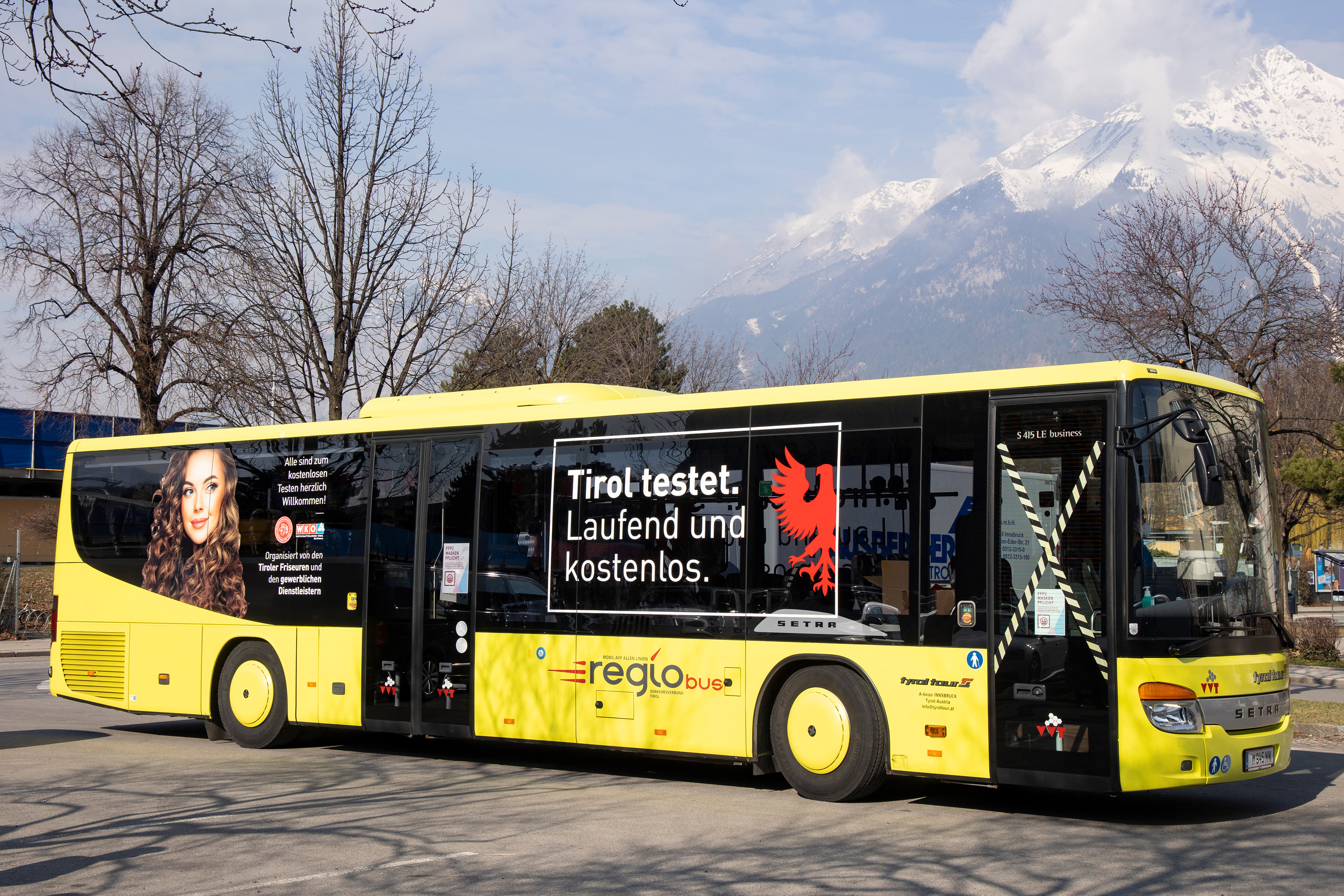Während der Test-Bus bislang wechselnde Standorte angefahren hat, wird es ab kommender Woche eine gleichbleibende Route geben, die von Maurach über Zirl, Innsbruck und Landeck nach Axams führt.