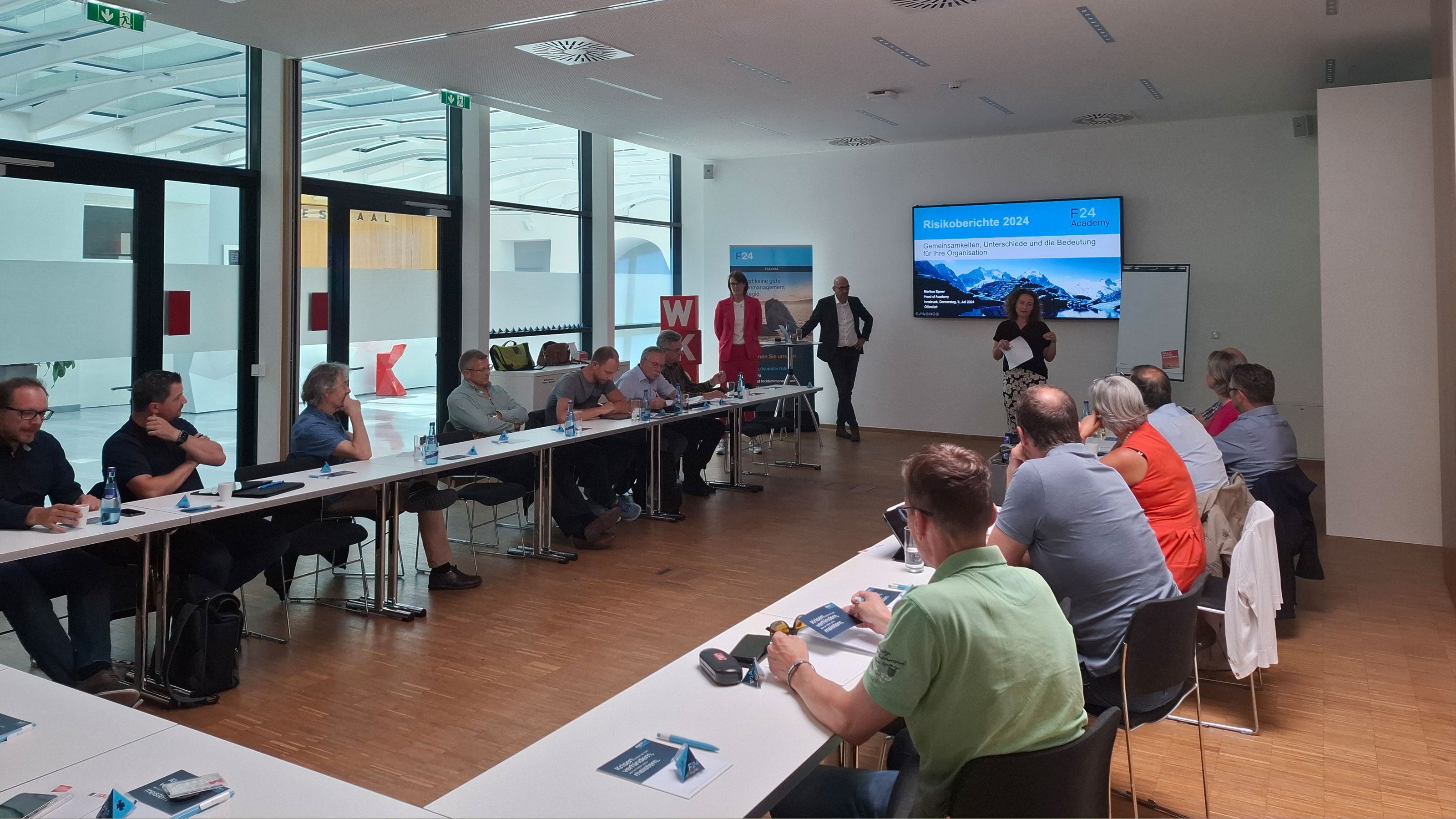 Am 4.7.2024 lud die Sparte Industrie der WK Tirol zum gemeinsamen Workshop Risiko-, Krisenmanagement sowie Krisen- und Notfallkommunikation ein. Zahlreiche Teilnehmer aus den Arbeitskreisen Umwelt, Qualität und Sicherheit waren mit dabei, als die Experten der F24 ins Thema einführten und anhand des Falles eines Cyberangriffs im Unternehmen eine interaktive Simulation mit den Anwesenden durchspielte!