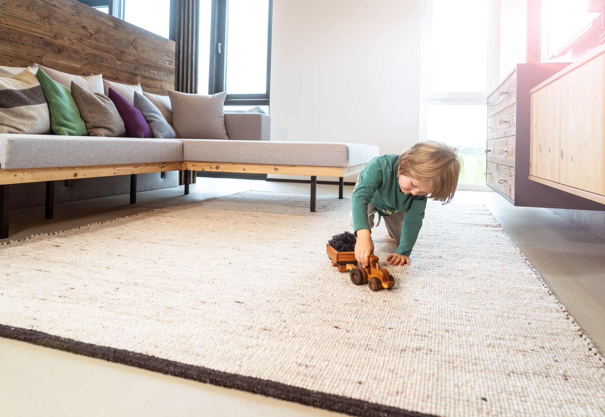 Der gesamte Betrieb legt größten Wert auf ein angenehmes Arbeitsklima und das handwerkliche Können der rund 30 Mitarbeiter:innen. „Wir stellen ein Produkt mit hoher Wohlfühlqualität her, dafür sind viel Erfahrung und Materialkenntnisse erforderlich. Mit größter Sorgfalt wird die hochwertige reine Wolle ausgewählt und verarbeitet. Nur so kann ein erstklassiges Naturprodukt hergestellt werden. Die von uns verwendete Naturwolle ist nicht nur äußerst angenehm, sie beeinflusst auch das menschliche Wohlbefinden positiv“, weiß Jordan. Die eingesetzte Wolle kommt einerseits aus Tirol, zu einem viel größeren Teil – bis zu 100 Tonnen - jedoch aus Neuseeland. Denn neuseeländische Schafe tragen besonders robuste und gleichmäßige Schurwollfasern. Diese gelten allgemein als sehr knitterfest, schmutzabweisend und schwer entflammbar. „Unsere Schafwollteppiche haben einen natürlichen Selbstreinigungseffekt und eine schmutzabweisende Wirkung. Die besonders dichte Kettbindung und die feste Webart garantieren eine hohe Strapazierfähigkeit ohne Flusen und Fusseln“, so Jordan.