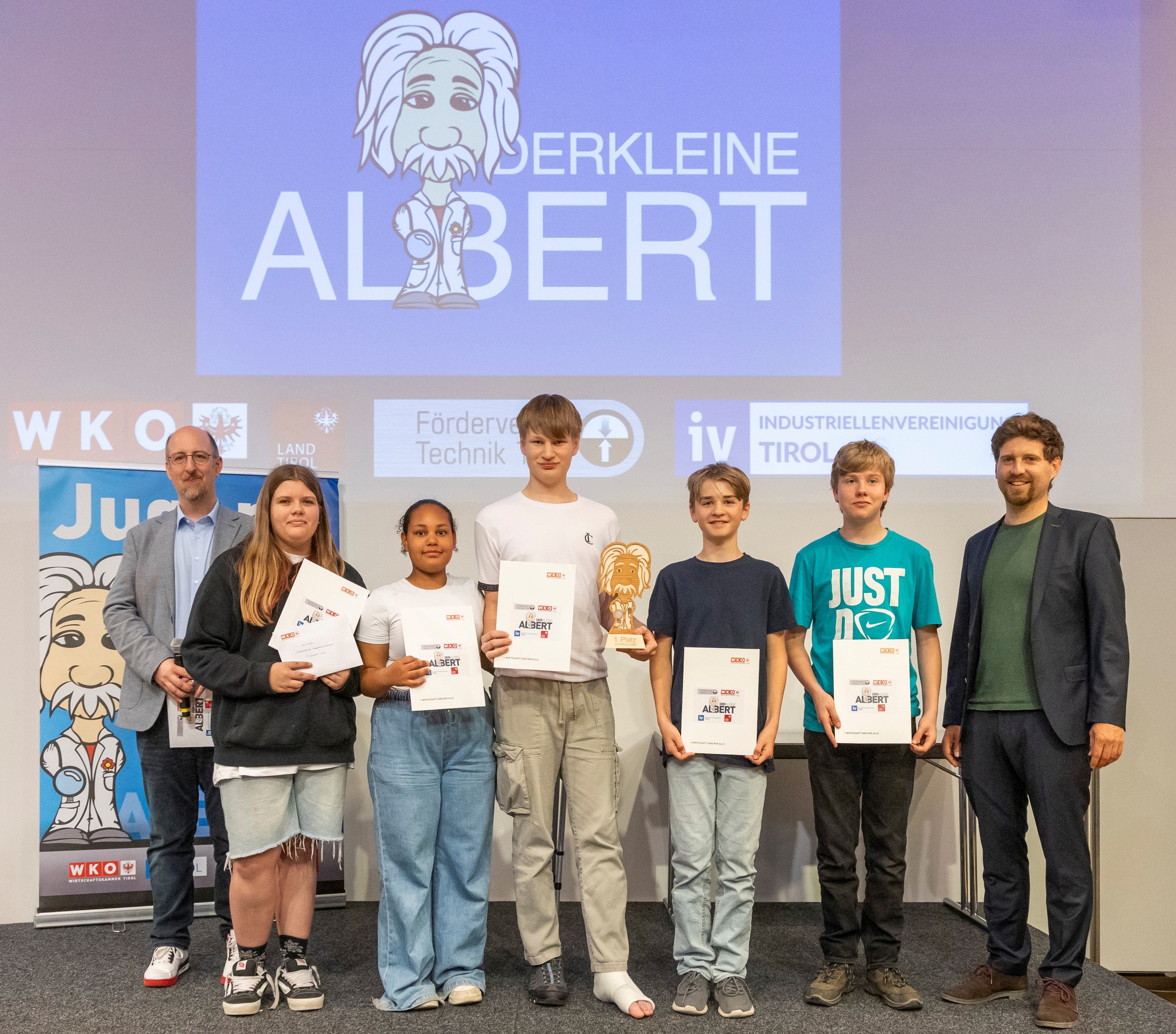 „Jugend forscht in der Technik – Auf den Spuren des kleinen Albert“ ist ein tirolweiter Forschungswettbewerb für Schüler:innen von Volks-, Mittel- und Polytechnischen Schulen. Ziel ist es, technisches Interesse frühzeitig zu fördern, Kreativität und Problemlösungskompetenz zu stärken und junge Talente für MINT-Themen zu begeistern. Getragen wird das Projekt von der Wirtschaftskammer Tirol in Zusammenarbeit mit dem Land Tirol, der Industriellenvereinigung Tirol und dem Förderverein Technik Tirol.