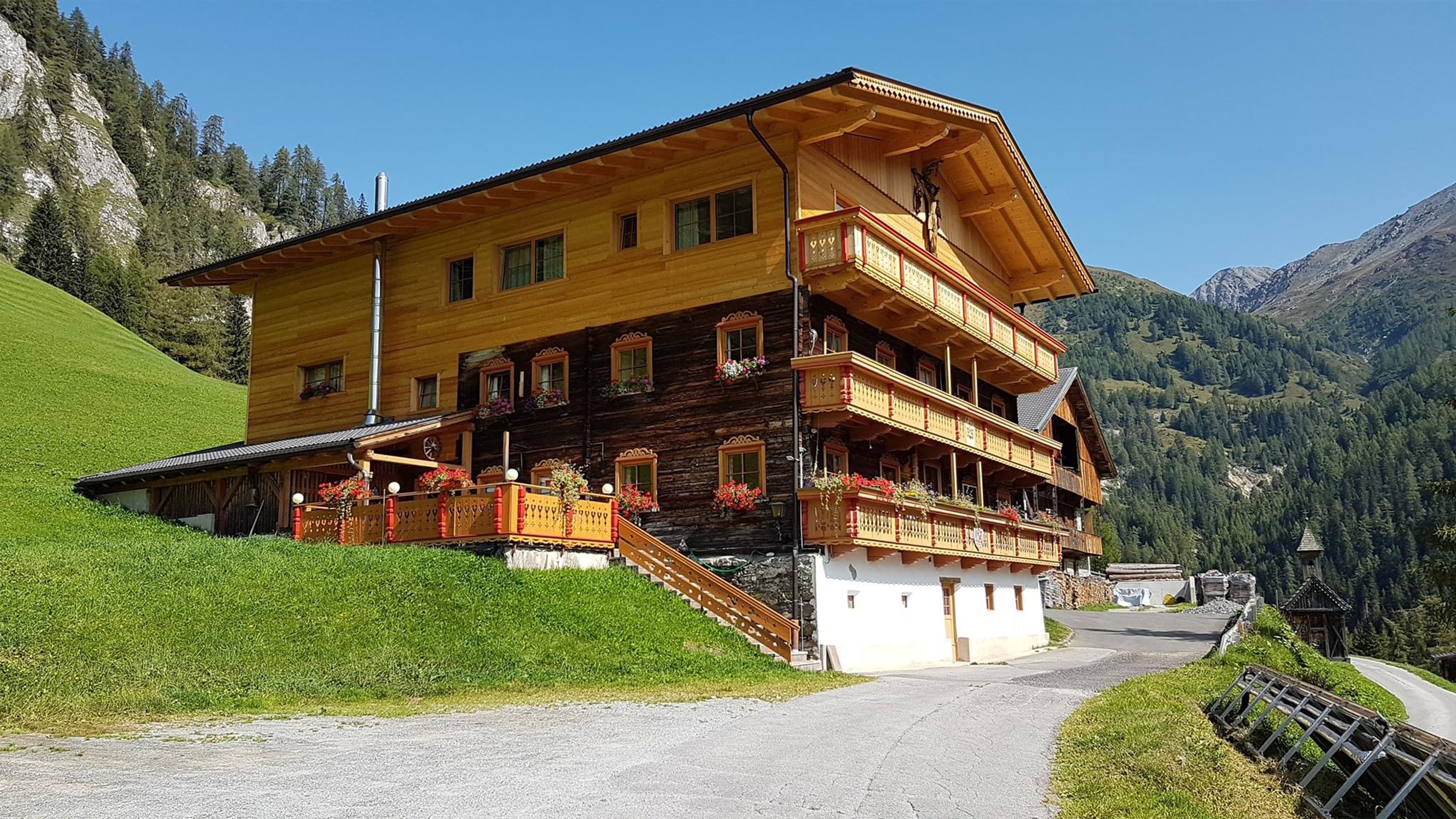 Hoch hinauf über die Kalser Glocknerstraße geht es zum Schliederlerhof, dem höchstgelegenen aktiven Bergbauernhof Osttirols, der seit langem auch als Beherbergungsbetrieb geführt wird. Peter Auster – bereits seit 15 Jahren Betriebsführer der Landwirtschaft – hat im Oktober 2019 auch die vorher von seinen Eltern und seiner Tante geführte Gäste-Pension übernommen.