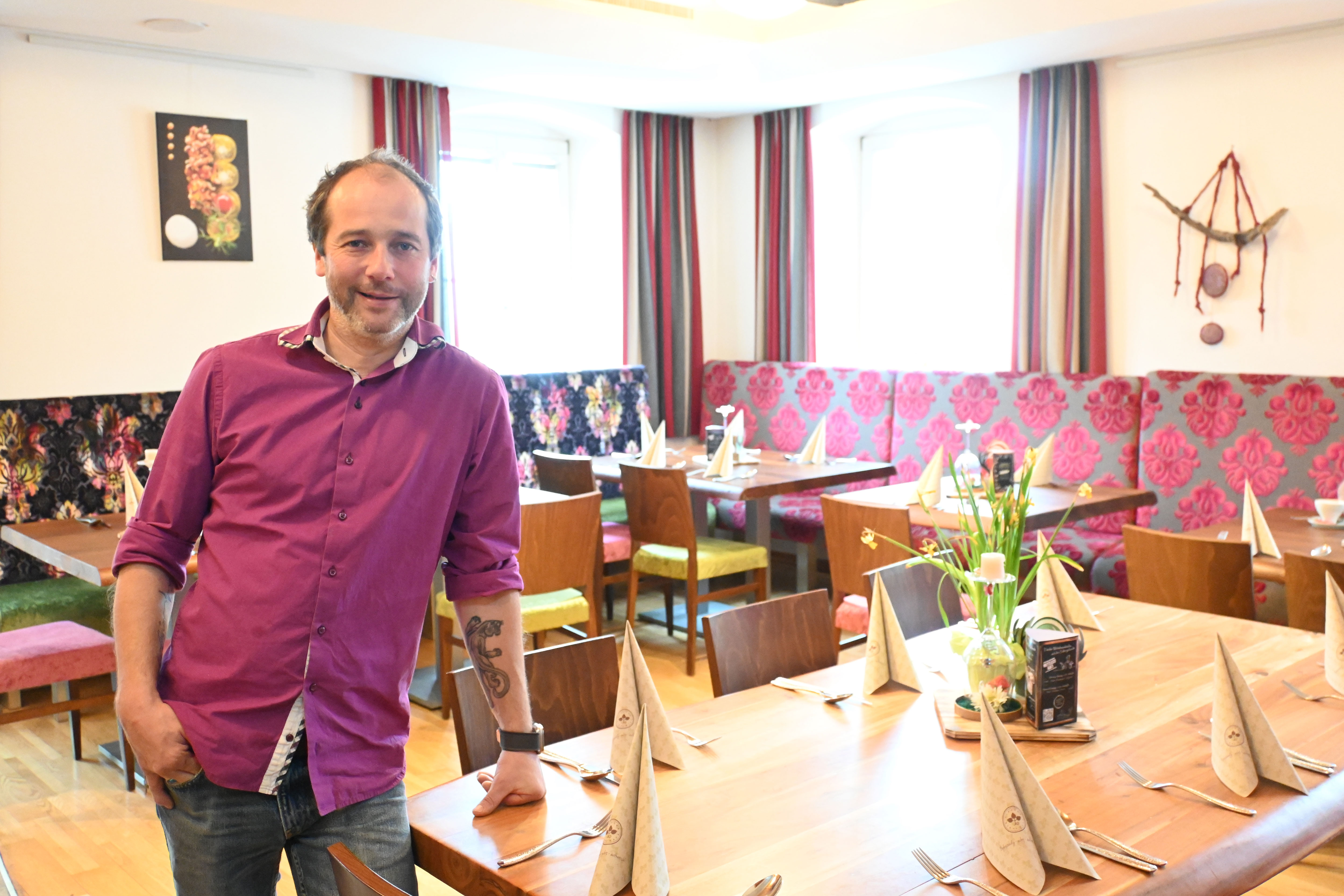 Gemeinsam mit seiner Frau Ronja hat Hans Peter Jungmann Ende vergangenen Jahres den Tirolerhof in Dölsach übernommen und aus „dem Gasthaus ein Wirtshaus gemacht“, erklärt er mit einem Augenzwinkern. Dabei steht beim altgedienten Gastronomen der einheimische Gast im Zentrum der Bemühungen. Die neuen Wirtsleute haben dem Tirolerhof auch gleich in Sachen Einrichtung ihren persönlichen Stempel aufgedrückt. Die Stube wurde mit einer gemütlichen hohen Polsterbank im auffälligen Design und rustikalen Vollholztischen kräftig aufgemö- belt.